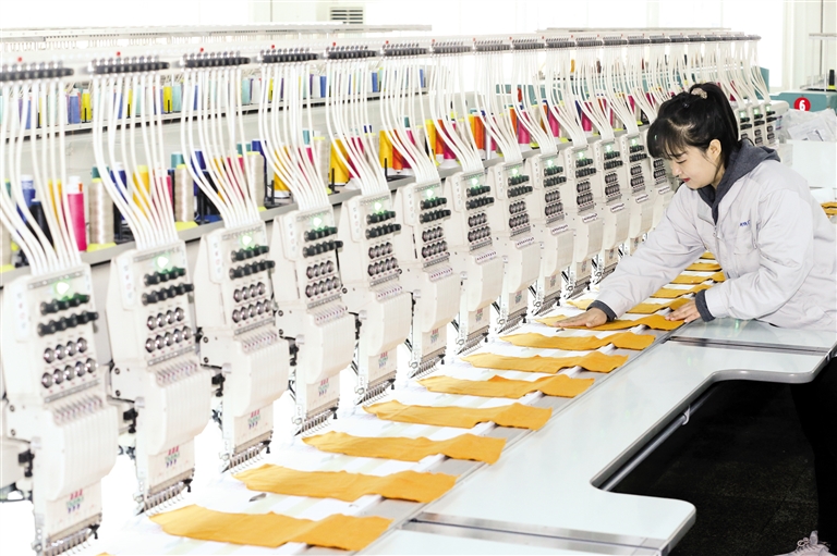 12月15日,山东省青岛市即墨区即发集团员工在生产服装绣花产品。当日,国家统计局发布数据显示,11月份,全国规模以上工业增加值同比增长4.8%,环比增长0.44%。1~11月份,全国规模以上工业增加值同比增长6.0%。经济运行延续总体平稳、稳中有进发展态势。 (据新华社报道)