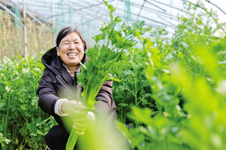 12月16日,在山东省聊城市茌平区信发街道,农民在采收芹菜。各地农民抢抓农时,开展田间管理、采收及农产品加工,为稳产保供和来年丰收打下坚实基础。(据新华社报道)
