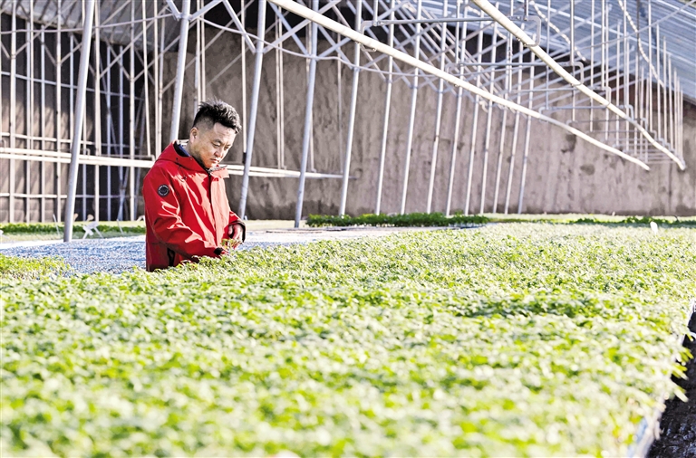 12月25日,在内蒙古蒙苗农业科技有限公司育苗大棚内,工作人员查看蔬菜幼苗长势。该公司育苗基地每年培育西红柿、辣椒、芹菜等多个品种蔬菜幼苗约7000万株,销售至北京、河北、河南、宁夏等省区市。2025年,内蒙古设施农业育苗量近30亿株,产值约14亿元,已累计建成5000万株以上集约化育苗中心15个。摄影/草原云·北方新报首席记者 牛天甲