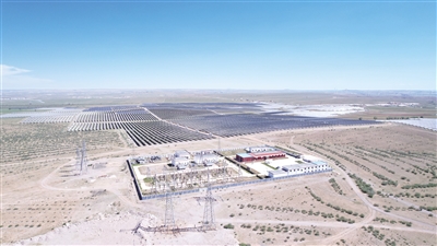 全球最大“沙戈荒”风电光伏基地在库布其沙漠崛起。这里曾是风沙肆虐的“不毛之地”,如今却铺满了深蓝色光伏板,一座座白色风机屹立于沙海之中,将无尽的风与光转化为清洁电力。该基地不仅是国家推进大型风电光伏基地建设、促进沙漠生态治理的标杆工程,更通过“板上发电、板下修复、治沙改土”的综合模式,实现经济效益与生态效益的双赢,真正将广袤的荒漠变成高效的“能源沃土”,为内蒙古乃至全国的绿电供应与消纳提供了坚实的基地支撑。