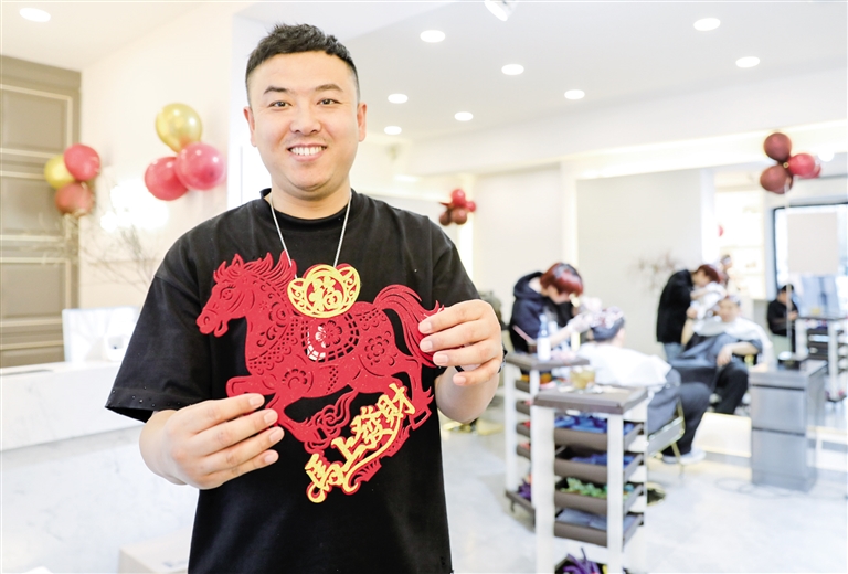 12月27日下午3点,阳光正好。推开富朗造型美发店的玻璃门,只见店里坐满了顾客,剪刀咔嚓咔嚓,热闹得像过年。