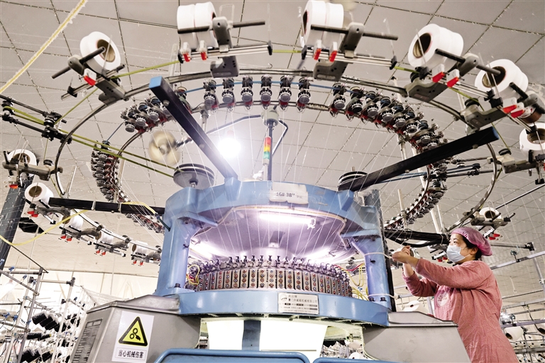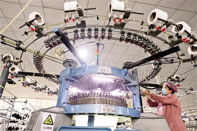 1月4日,在山东省枣庄市市中区税郭镇一家企业,工人在生产服装面料产品。元旦过后,各地企业纷纷开足马力抓紧生产,赶制订单,力争新年“开门红”。(据新华社报道)
