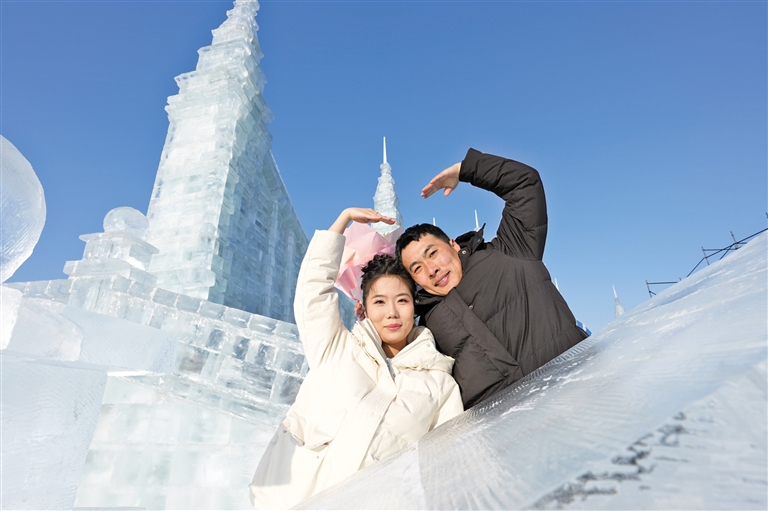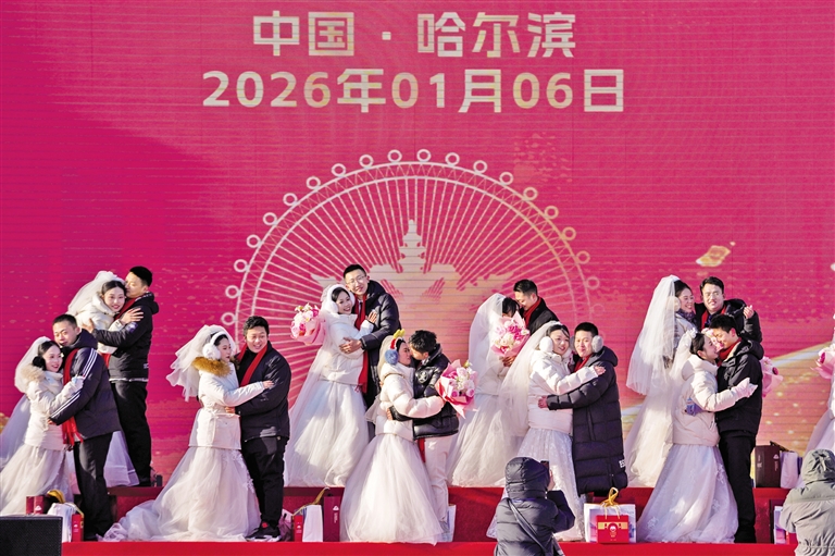 1月6日,哈尔滨第四十二届“四季沐歌”公益冰雪集体婚礼在哈尔滨冰雪大世界园区举行。来自全国18个省、自治区和直辖市的42对新人以冰雪为媒,在冰雪童话世界里携手步入婚姻殿堂。哈尔滨公益冰雪集体婚礼作为哈尔滨国际冰雪节重要活动之一,已成功举办42届,为来自全球五大洲20多个国家的1362对新人举办了独具特色的婚礼。(据新华社报道)