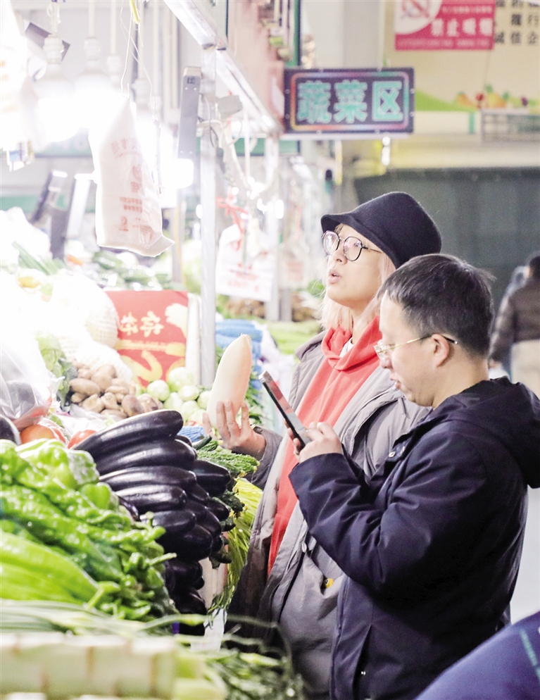 1月7日,呼和浩特市民在保全庄农贸市场选购蔬菜。据了解,2025年12月29日~2026年1月4日,呼和浩特市商务局对23家生活必需品样本企业监测,呼和浩特市生活必需品市场供应充足,价格运行平稳。与前一周相比,重点监测的粮油类、肉类、禽蛋类、蔬菜和水果类等51种商品,零售价格呈19涨6平26降。其中,蔬菜零售均价环比下降,监测的30种蔬菜价格呈10涨20降,平均零售价格为8.38元/公斤,环比下降1.3%。预计后期蔬菜市场运行稳定,价格将在合理范围内小幅波动。摄影/草原云·北方新报首席记者 牛天甲