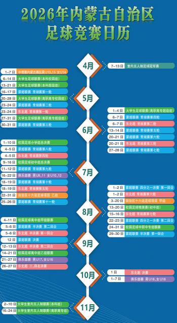 注意啦!2026内蒙古自治区足球竞赛日历已于近日发布。