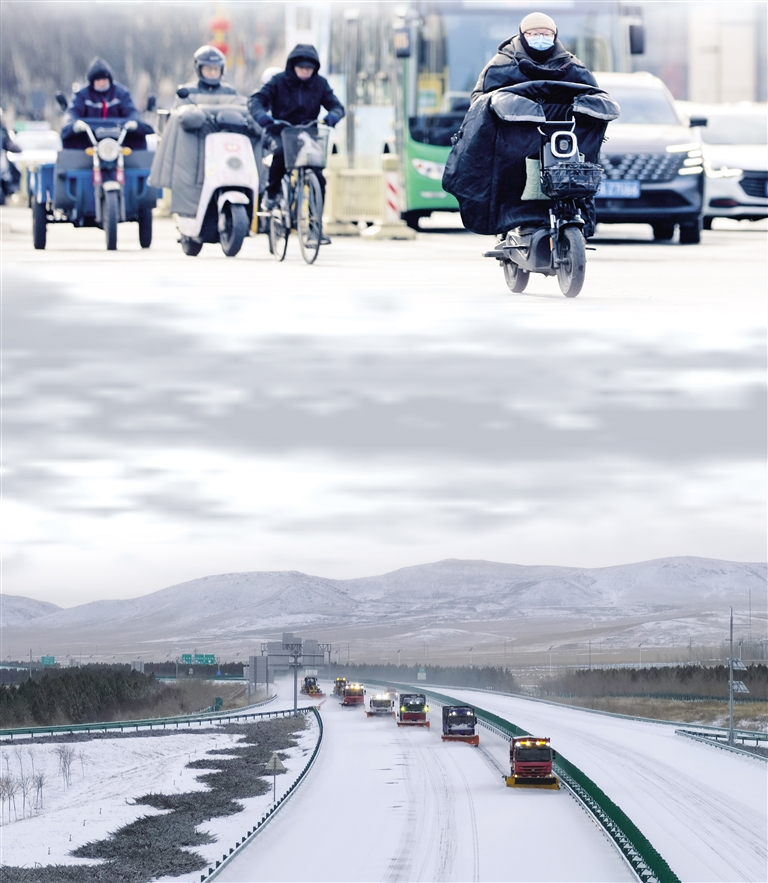 呼和浩特街头,市民身着厚重冬装出行。