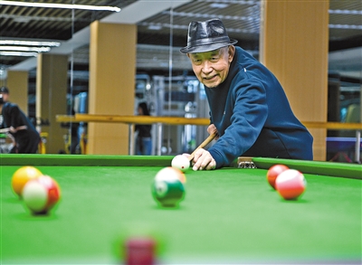1月19日,通辽市科左后旗养老院运动馆内,几位老人正在进行台球比赛,“选手”聚精会神,“观众”鼓掌叫好,现场一派其乐融融。 据了解,科左后旗投资7500万元建设了这家养老院,占地面积2万多平方米,设置床位488张。院内有党建室、老年大学、健身室、书画室、怀旧室、图书馆、理发室、台球室、多功能厅等场馆。“这里饭菜可口、天天不重样,每天都有专人照顾我们,还能和老伙伴们在一起聊天打牌,很热闹。”居住在这里的王树林老人说。截至目前,该养老院已有246名老人入住。