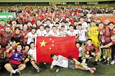 上半场中国队控球率达到65%,并多次制造威胁,但未能打破僵局。易边再战,中国队在第47分钟通过一次角球机会改写比分,彭啸在前点头球得手,5分钟后向余望在禁区前沿转身抽射破门,2:0。当替补登场的王钰栋接应队友传球,轻松打入第三粒进球时,小伙子兴奋地脱掉了球衣,并高高抛向天空,哪怕吃到一张黄牌的代价也在所不惜。他可以“忘乎所以”,因为他知道,他和这支队伍已经改写了中国足球的纪录,他们是创造历史的一代年轻人!