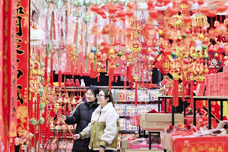 1月25日,市民在河北省石家庄市义堂年货市场选购春节饰品。 1月25日,市民在河南省安阳市内黄县一处休闲广场观赏“飞马”花灯。 佳节将至,年味渐浓。人们购年货、逛集市、游玩赏景,喜迎新春。 (据新华社报道)