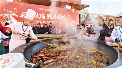 1月31日至2月4日,电商基地北广场同步开启免费美食品鉴专场,现场烹饪烤全羊、托县炖鱼、乌兰花羊杂、巴盟烩酸菜等经典蒙味,搭配蒙古奶茶与粉汤,让市民感受舌尖上的草原风情与烟火气息。