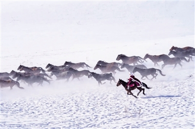 贺娇龙握紧缰绳,压低身体重心,试图控制身下的坐骑,但是她瘦弱的身躯显然已开始力竭,动作慢慢变形,在马背上的起伏越来越大。马匹一个转弯,她重重摔在了地上,雪沫纷扬。