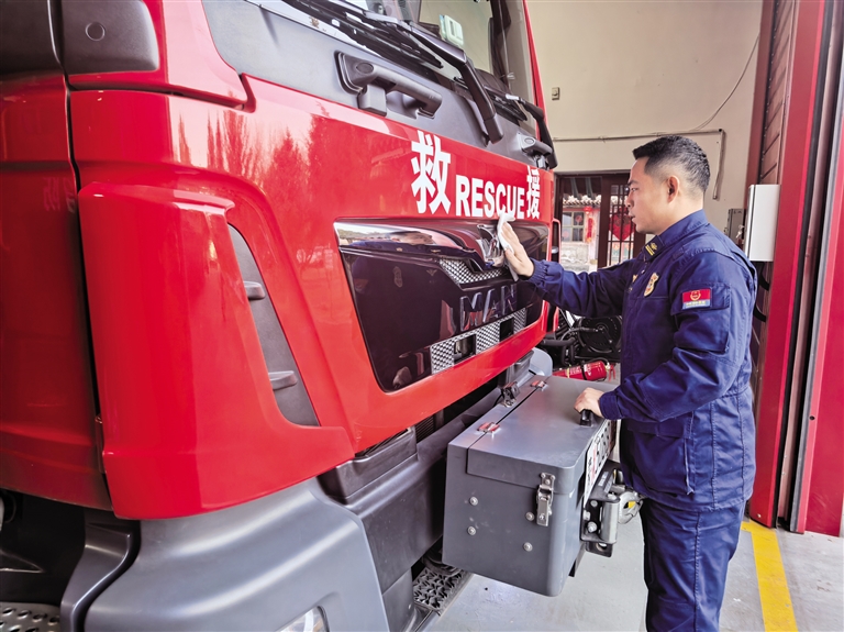 消防一线护新春,方向盘就是他的战位!