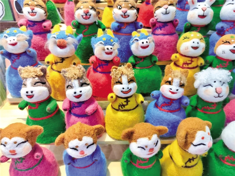 如今,随着各类文旅活动、非遗展演和线上推广不断开展,毡绣产品的销路越来越广,节日期间的订单量更是迎来高峰。斯琴托雅介绍,小巧精致的摆件类产品售价常在50元左右,稍大的工艺品售价则在100元至300元之间,这些丰富多彩的特色产品不仅深受国内游客青睐,也成为不少国外游客喜爱的伴手礼。