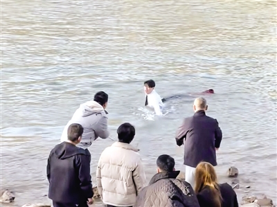 近日,一段暖心视频在短视频平台刷屏:一位穿着白衬衫打着领带的小伙子,跳进黄河营救一名落水者。他就是兰州大学历史文化学院2025级博士研究生谈磊。 回忆起3月6日下午的惊险瞬间,谈磊表示:“当时情况很紧急,我没想那么多,只觉得救人要紧。”
