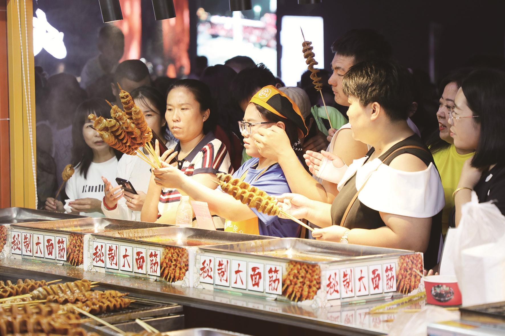 夜幕降临,美丽的赛汗塔拉灯光绚丽,动感的音乐此起彼伏,一个个精彩纷呈、激情澎湃的节目将活动现场的氛围推向高潮。在啤酒和美食的各个售卖区,顾客络绎不绝,现场人声鼎沸,热闹非凡,大家尽情品尝诱人美食,把酒一端,相谈甚欢。