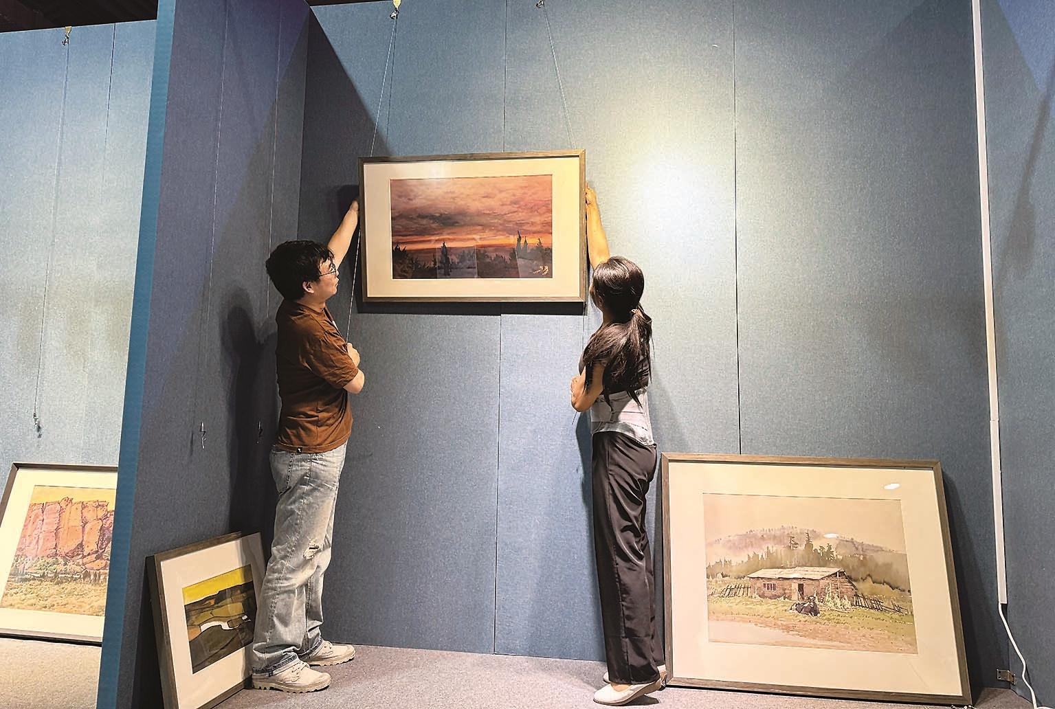 本报讯 7月10日,在包头国际会展中心内,各参展商正在忙碌地将参展的美术作品陈列好,为11日的预展作最后的准备工作。