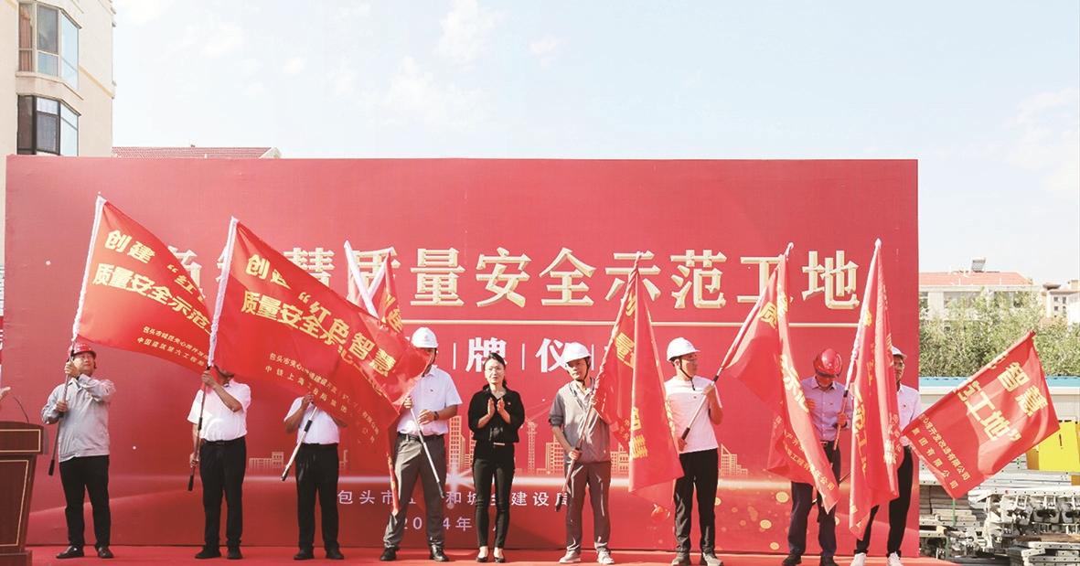 本报讯 7月12日,昆区“夹心房”改造项目——团21#社区五七干校项目现场举行了“红色智慧质量安全示范工地”授旗授牌仪式。该项目以其红色智慧管理模式和优越的质量安全体系,成为建筑行业的新焦点。