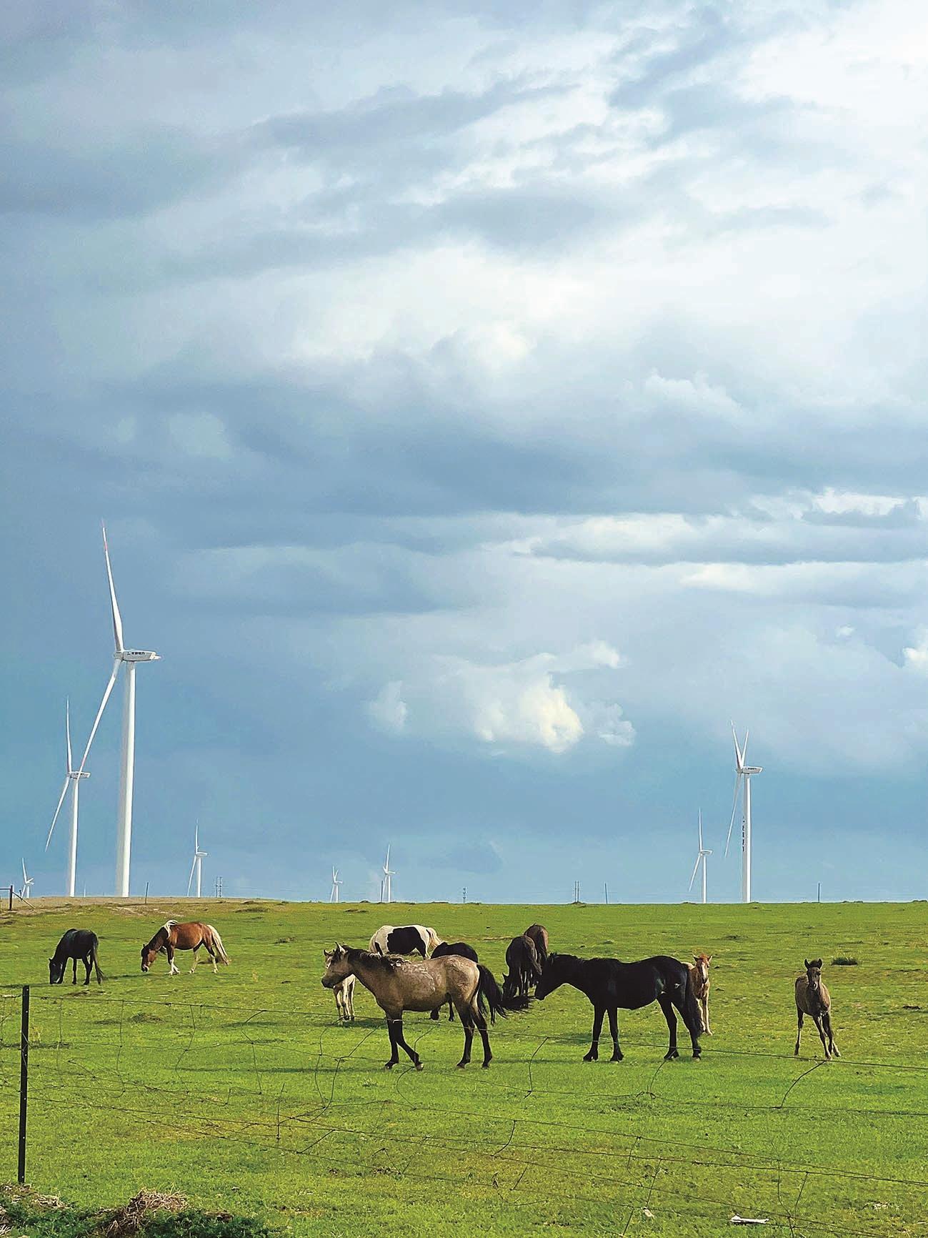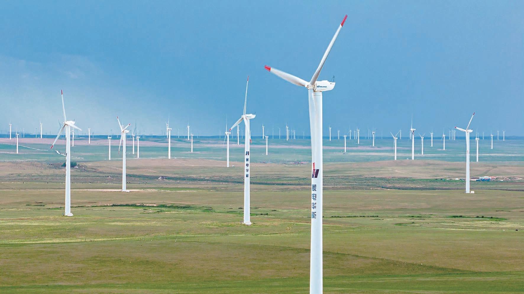 7月12日,在白云鄂博矿区,一排排风力发电机与草原构成一幅美丽画卷。近年来,包头市立足自身装备制造产业优势,抢抓新能源发展机遇,在高质量打造“世界稀土之都”的同时,光伏、风电装备制造产业快速发展,形成稀土、光伏、风电装备制造三大产业集群。记者 李强 摄