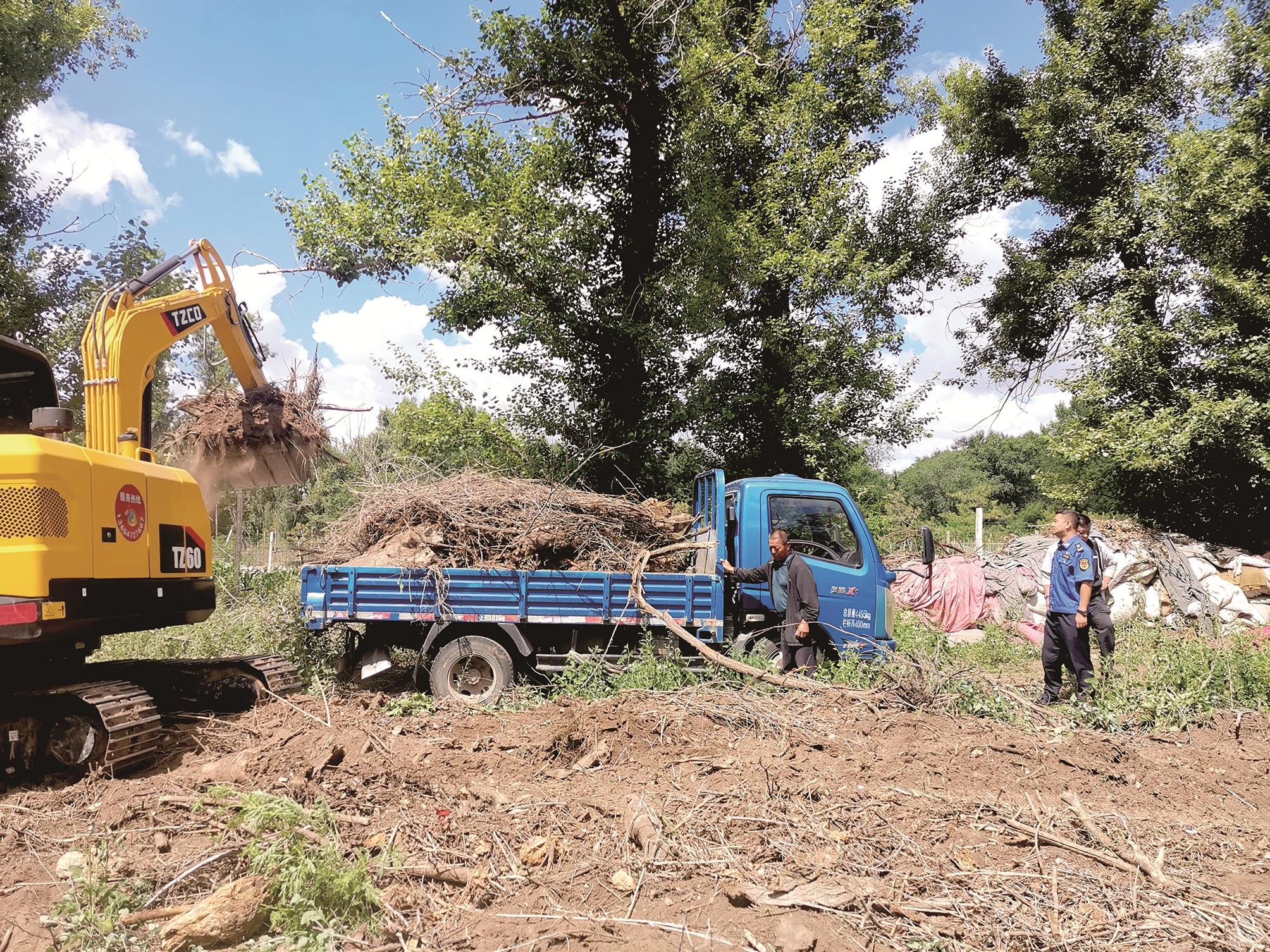 从5月初开始,青福镇综合行政执法人员向东梁地的种养殖户宣传打击非法圈地、私搭乱建等政策法规,并发出限期整改通知书。之后展开集中整治行动,取缔、制止所有非法畜禽养殖行为,对私搭乱建进行依法拆除,并对每个种植户的篱笆予以修剪、取齐、平整或更换,清理区间道、林间全部杂物和垃圾等。整治行动共出动挖掘机2台、建筑垃圾清运车2辆、森林消防车1辆,专业施工人员20余名,强制拆除违章建筑2万平方米,整治范围达15万平方米。