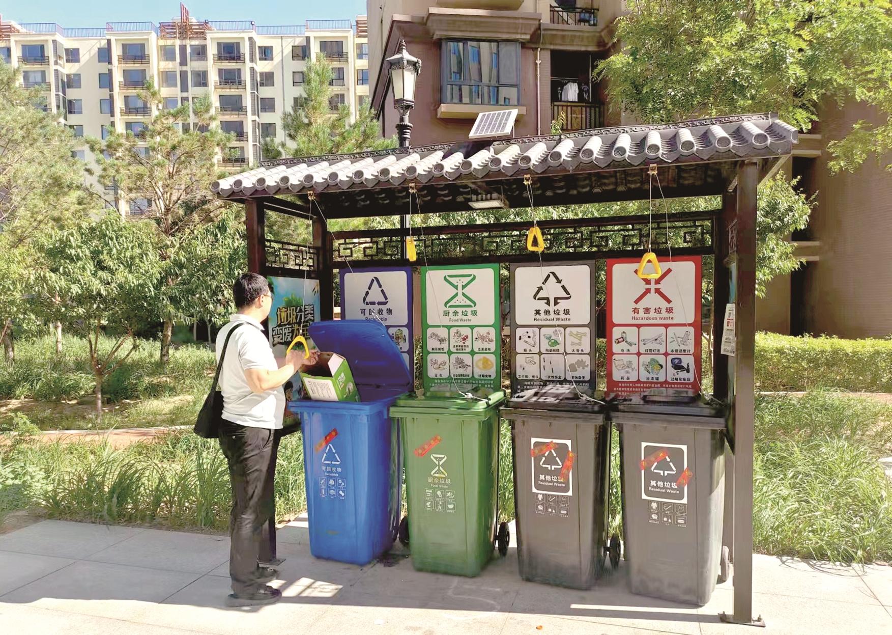 锦林社区管辖内的两个小区锦绣世纪城和兵工佳苑小区内目前共设置了10个生活垃圾分类收集点,每个收集点都配备了可回收物、厨余垃圾、有害垃圾、其他垃圾专用垃圾桶,还加盖了遮挡棚,方便居民分类投放垃圾。但投入使用一段时间后,不少居民反映,在投放垃圾过程中垃圾桶盖上经常会有一些污渍残留,用手翻盖时感觉非常不卫生。