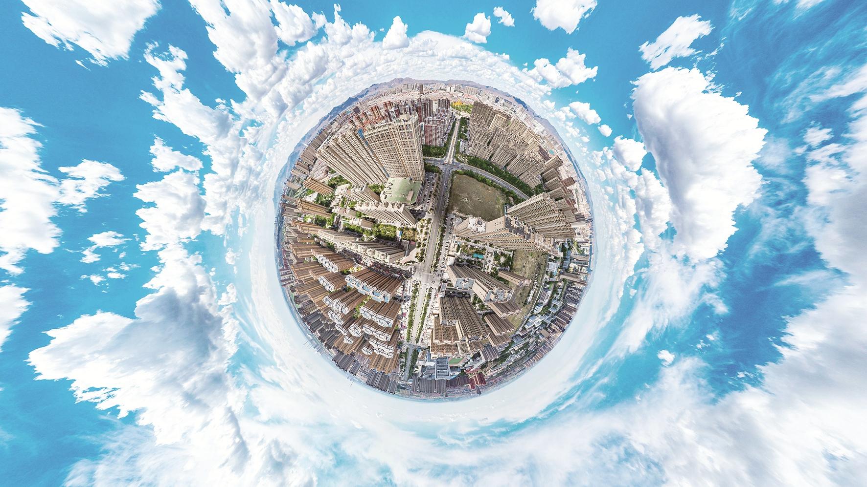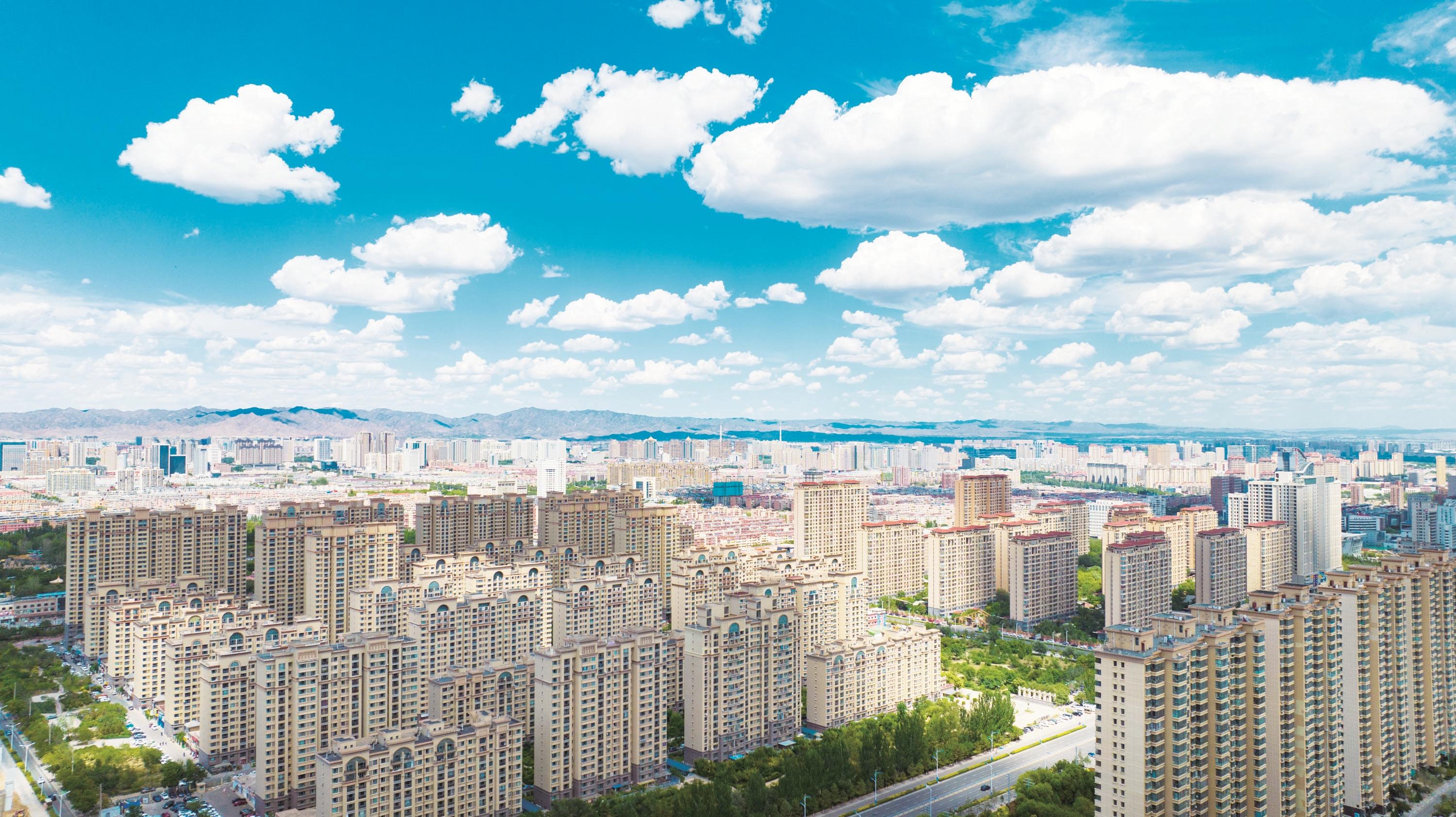 7月28日,航拍全景蓝天白云下的包头城市风光。