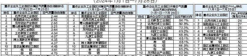包头市重点企业及工业园区环境空气质量排名