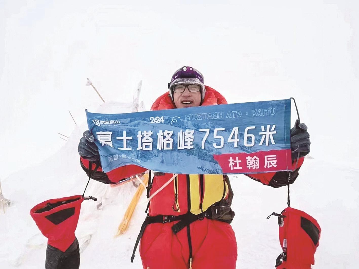 说起自己与登山运动的不解之缘。杜翰辰说,这要感谢他的书法老师。“老师是一位户外运动爱好者,空闲时间经常和同学们分享那一个个徒步登山的美好瞬间,激发起人对登山的兴趣。”去年,杜翰辰第一次接触登山运动,登顶了哈巴雪山,达到了慕士塔格峰的准入标准。今年,杜翰辰把目标锁定在慕士塔格峰。