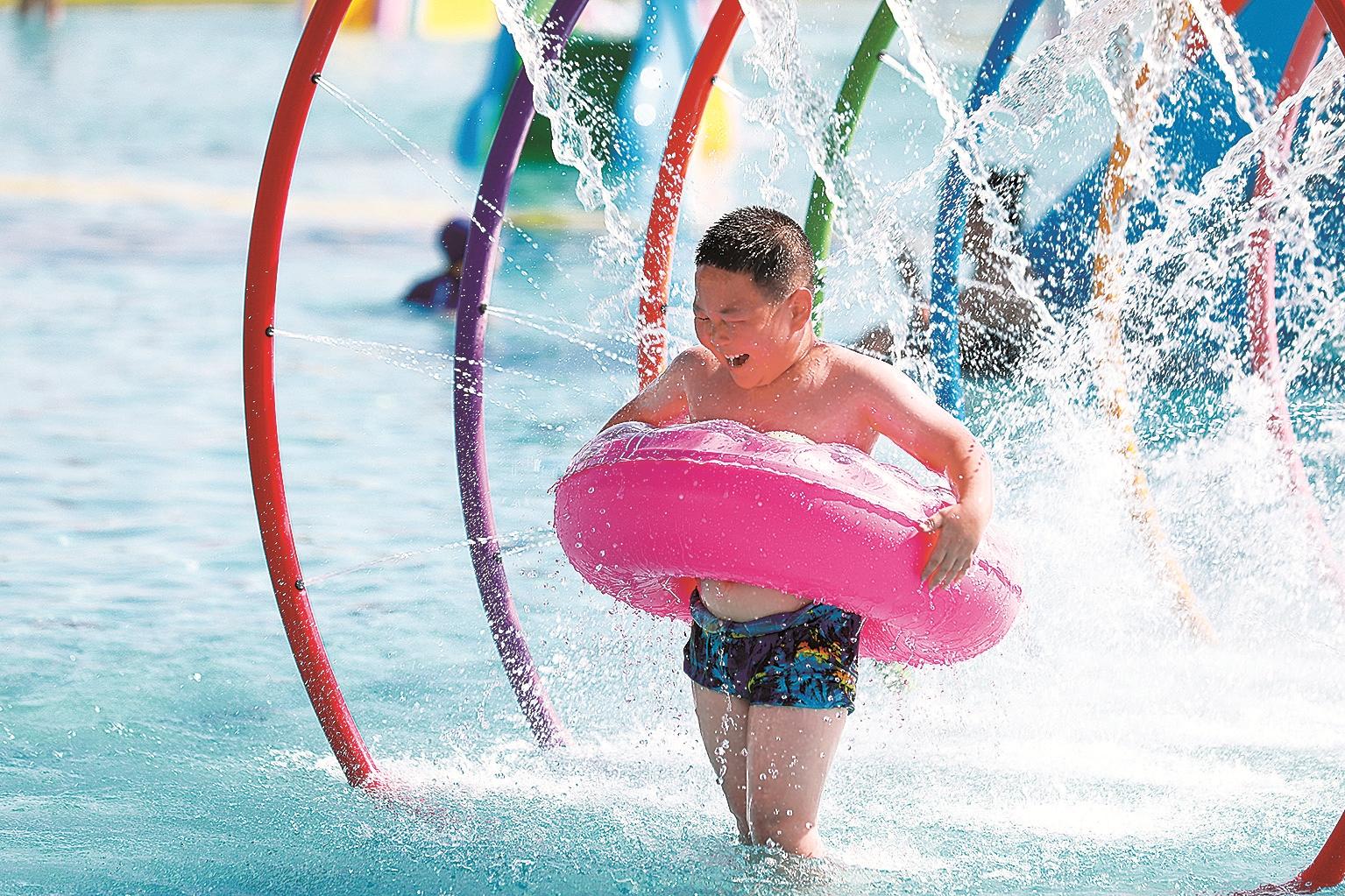 ?8月4日,小朋友在湖南省衡阳市衡阳县一水上乐园亲水消暑。新华社发(刘欣荣 摄)