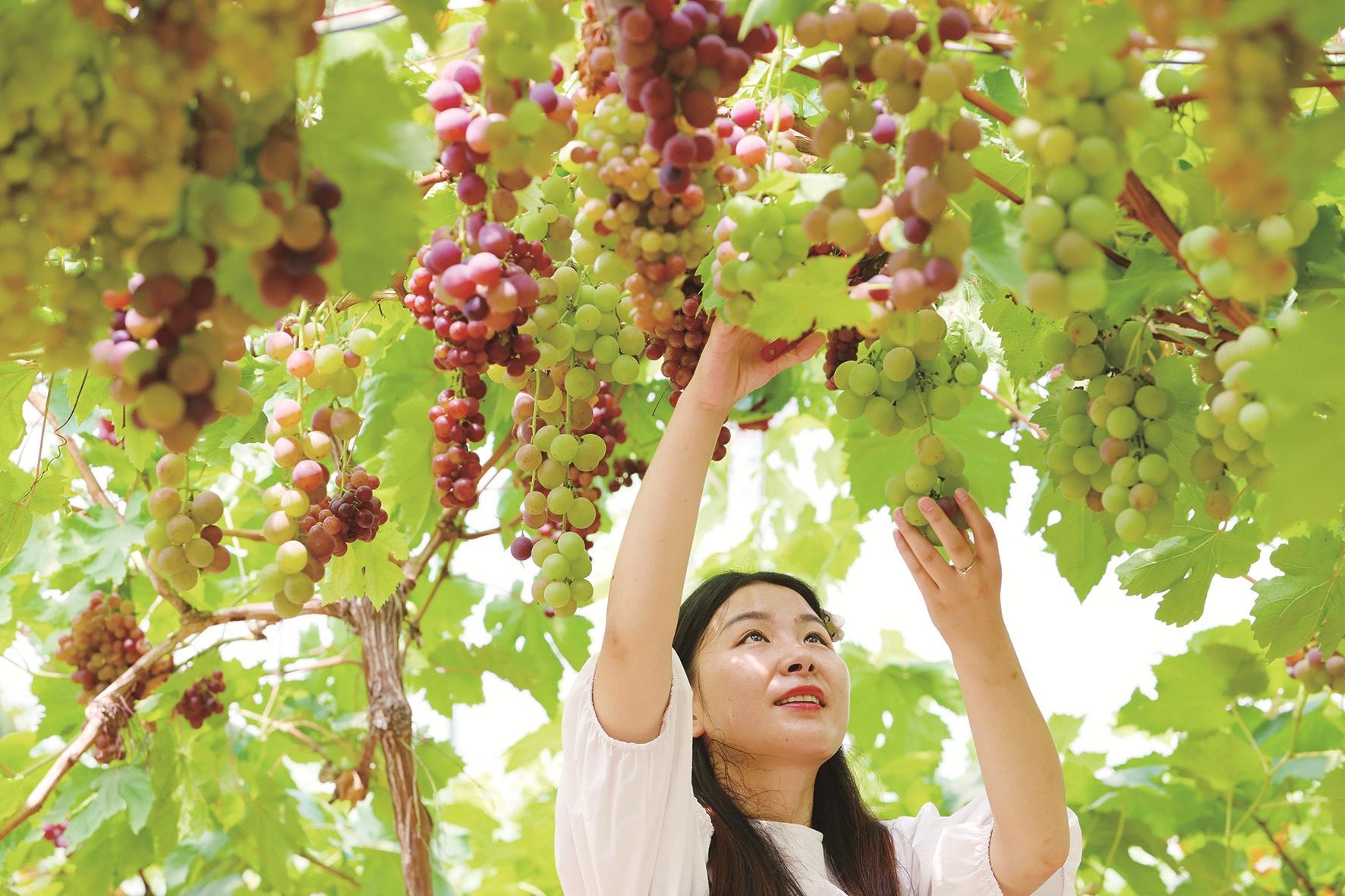 8月6日,村民在重庆市黔江区蓬东乡麻田村一个葡萄基地采摘。
