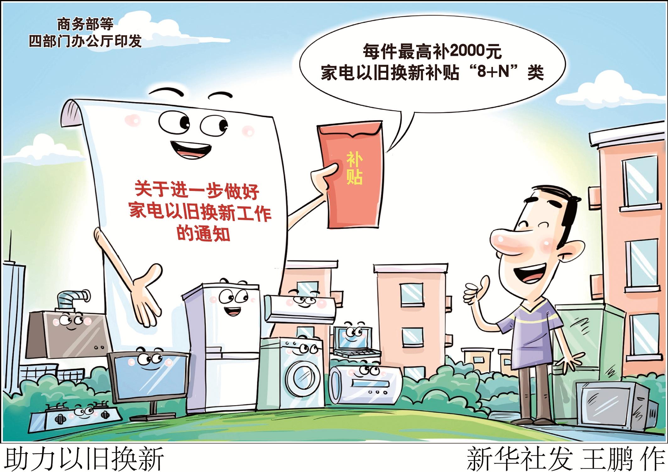 当前,支持消费品以旧换新工作正加力推进。补什么?怎么补?消费者十分关心。商务部等四部门近日印发关于进一步做好家电以旧换新工作的通知,明确一系列具体举措。