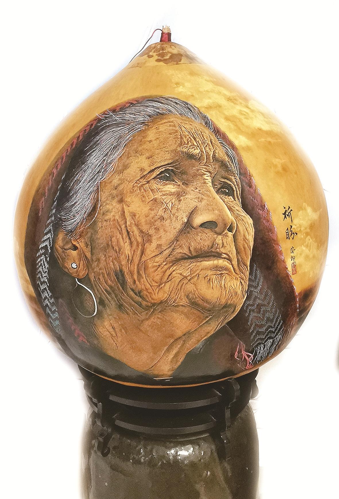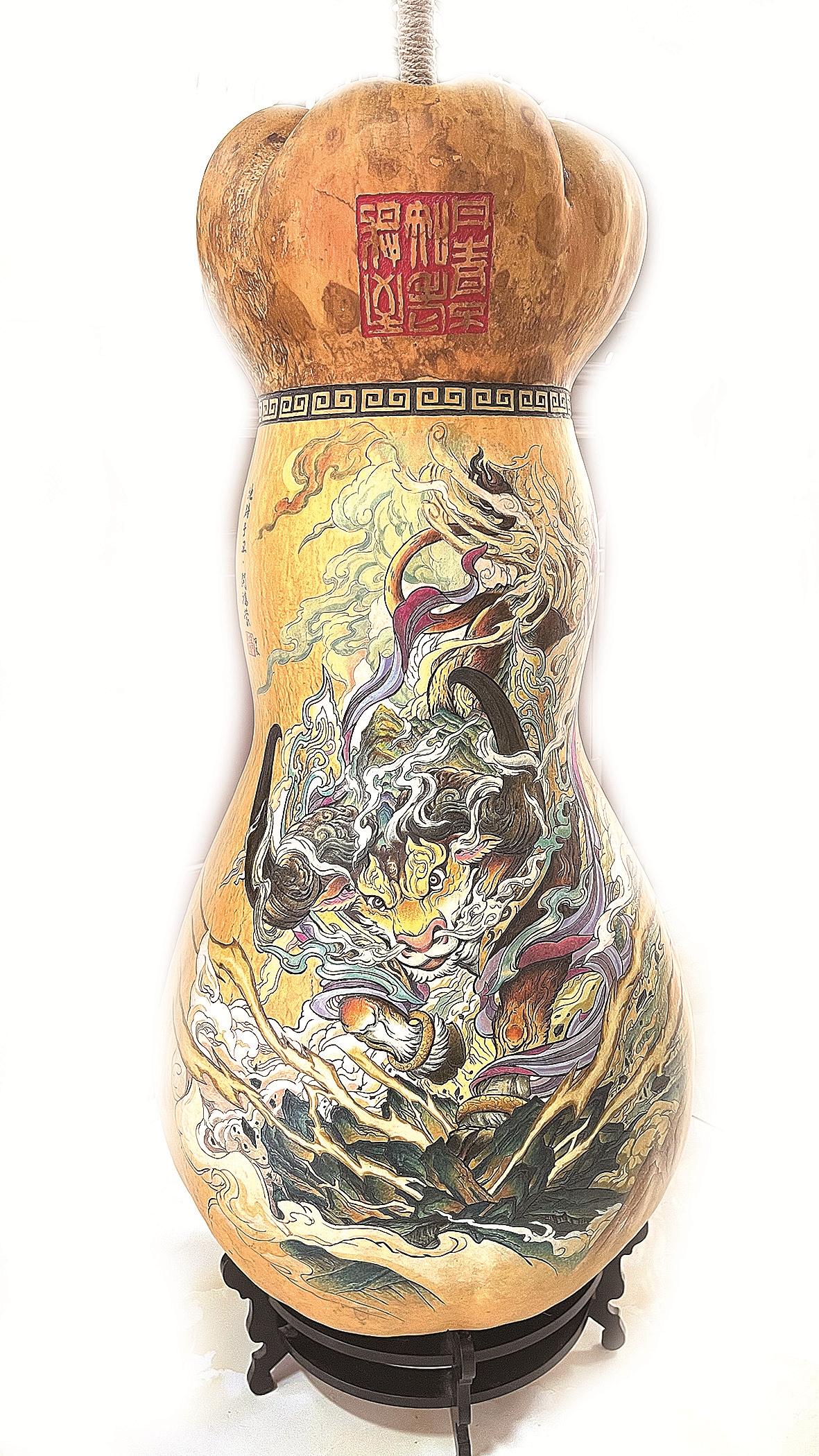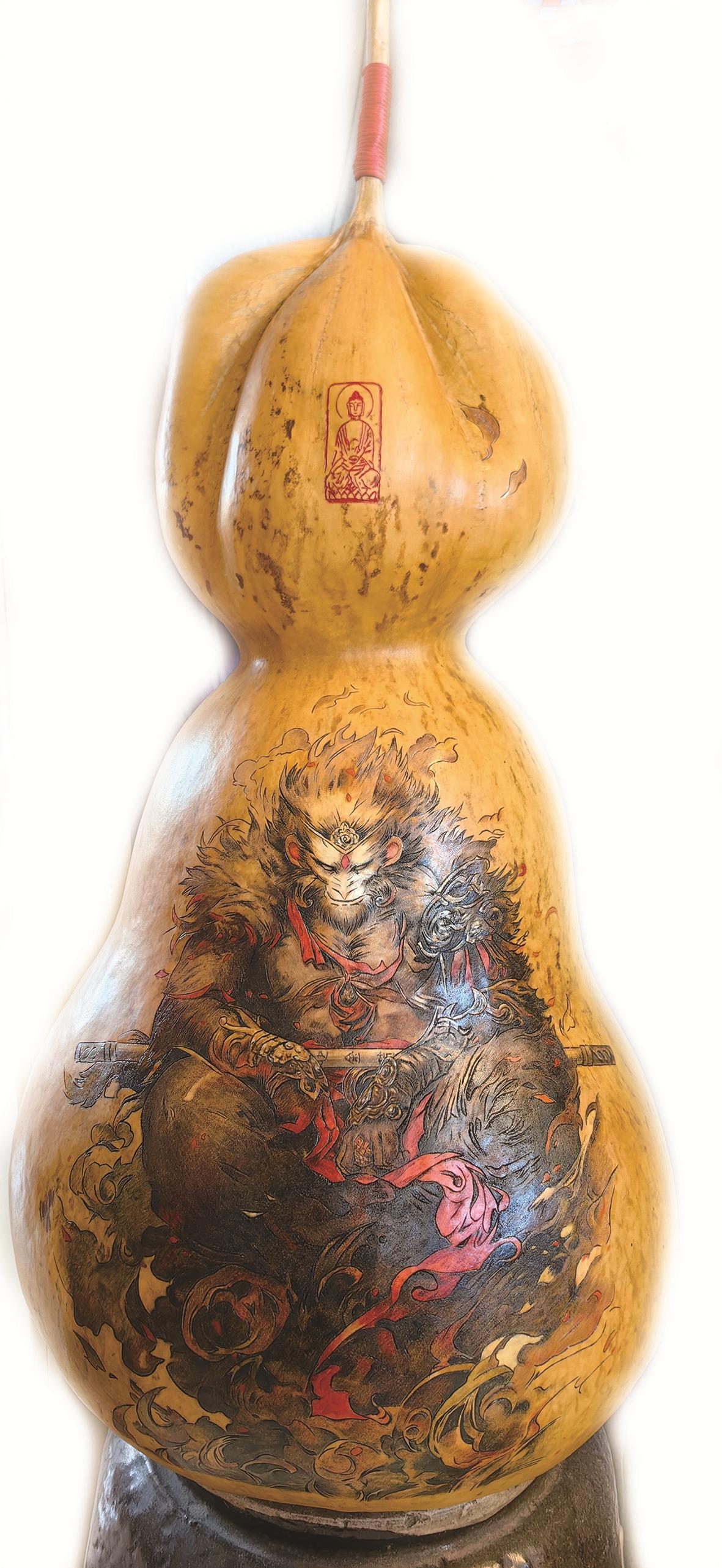 另外,《玉牛呈祥》《西游记》《水浒108将》《金陵十二钗》《十八罗汉》《地藏王》《蒙娜丽莎》等超大葫芦作品,多次在各类美术大奖赛中获奖,并先后被加拿大国际友人、表演艺术家六小龄童及国画大师鲁秋老先生等艺术爱好者收藏。