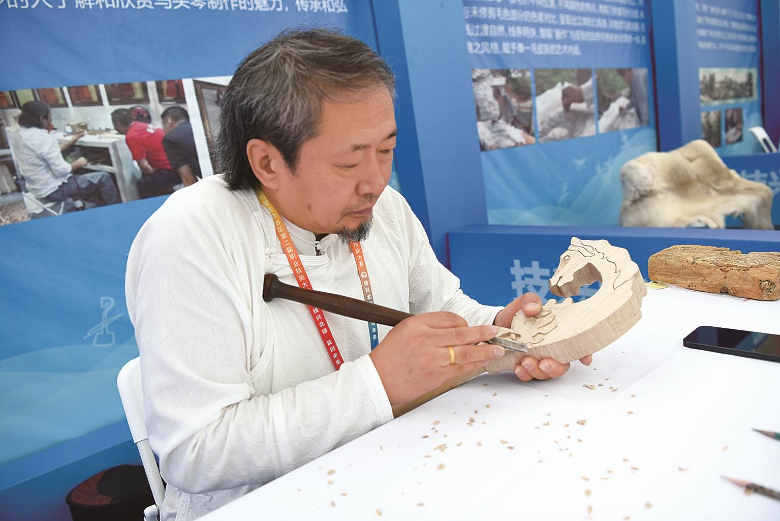 刨挖、打磨、雕刻琴杆上的马头……经过几十道纯手工制作工序,来自鄂尔多斯市鄂托克前旗的参赛选手阿拉达日都林用满是老茧的双手小心翼翼地抚摸着刚刚做好的马头琴,像抚摸自己最心爱的孩子一样,每一把马头琴都承载着他的一份匠心。