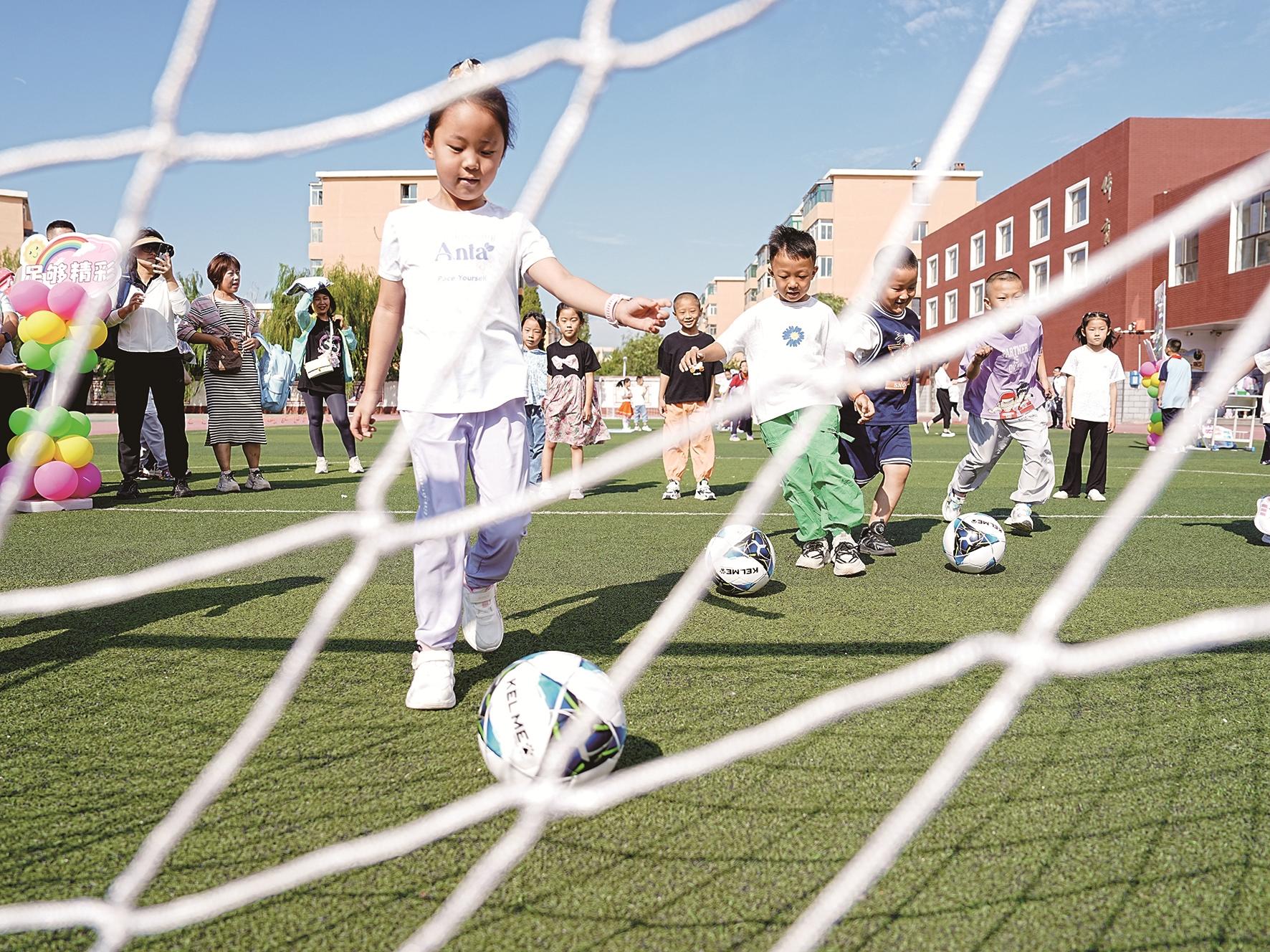 友谊大街第十八小学将奥运元素融入开学迎新仪式,“展翅高飞越龙门”障碍跨栏,希望同学们在学习生活中像奥运健儿们一样勇于克服困难,有一往无前的决心;“足够精彩”足球射门,希望同学们用脚尖传递梦想,在人生的竞技场上瞄准目标……