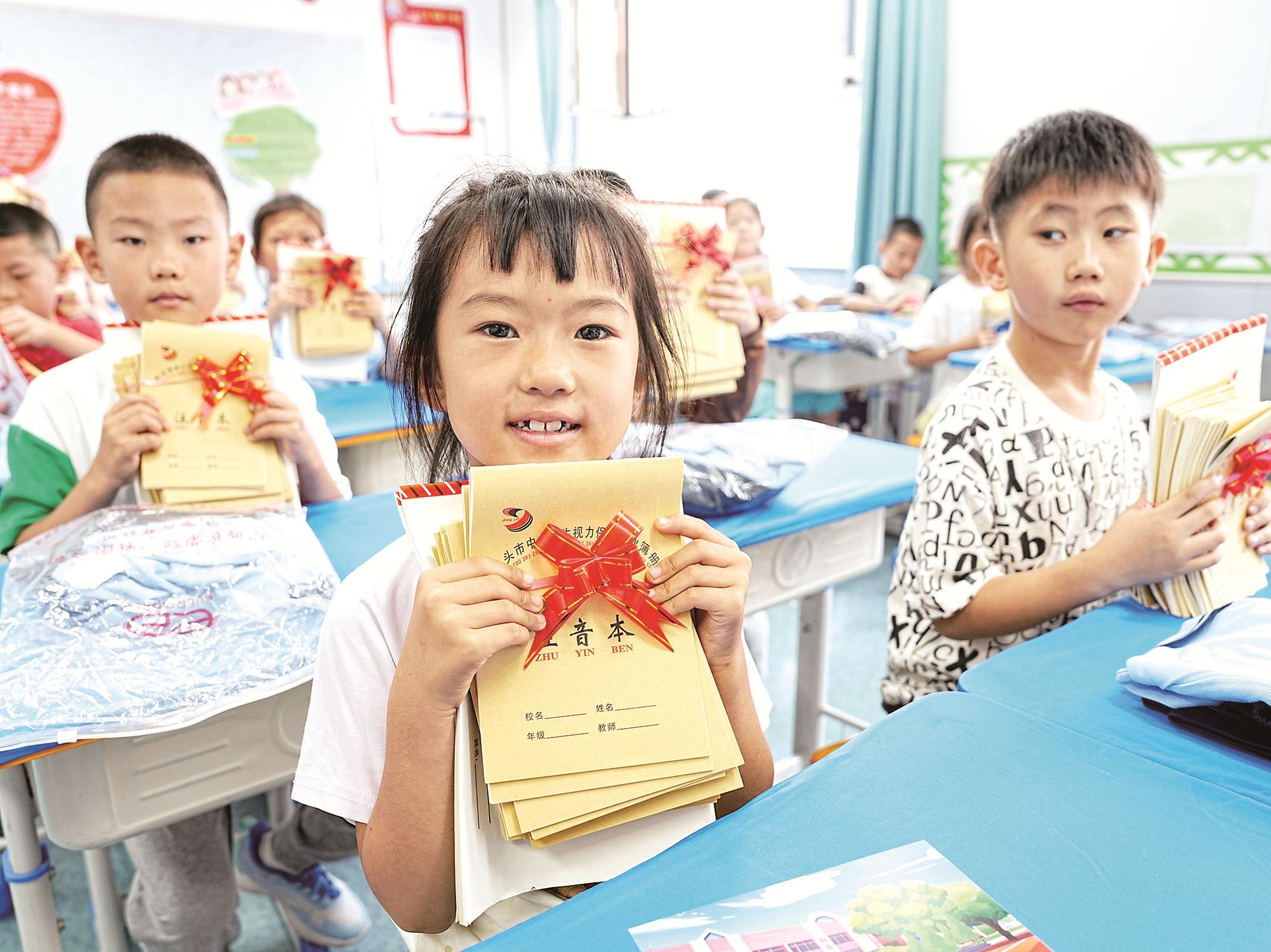 林荫路第七小学的一年级新生们领到老师精心准备的“学习礼包”。