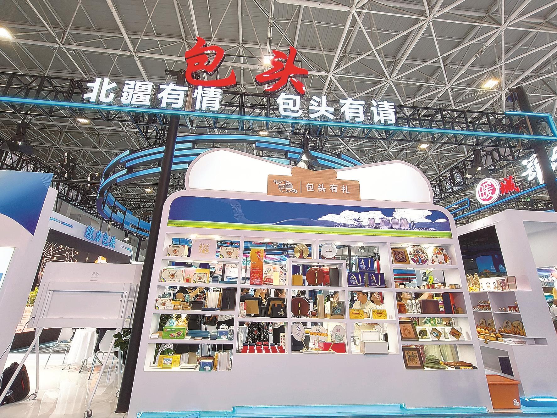 “文化+科技”典范的稀土抗菌陶瓷杯,自然醇味无添加无污染的“41°固阳献”农特产品,融合科技与创新的东宝生物科技健康食品以及包头地标文创雪糕等特色展品圈粉无数。“非遗传承”板块里,计氏羊皮画、包头剪纸、徐氏杏干制作技艺、包头六合枕等独具特色的包头非遗吸引了不少观众现场体验感受。