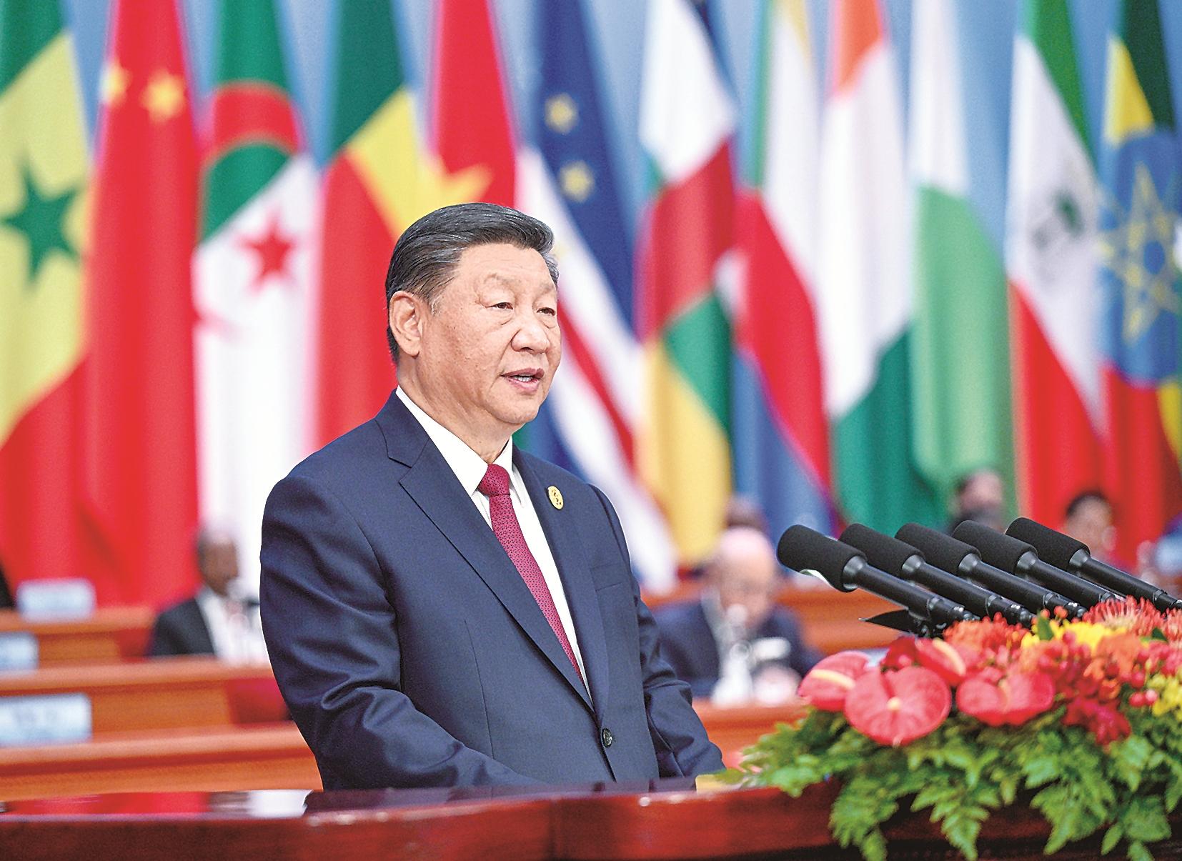 9月5日上午,国家主席习近平在北京人民大会堂出席中非合作论坛北京峰会开幕式并发表题为《携手推进现代化,共筑命运共同体》的主旨讲话。 新华社记者 李学仁 摄