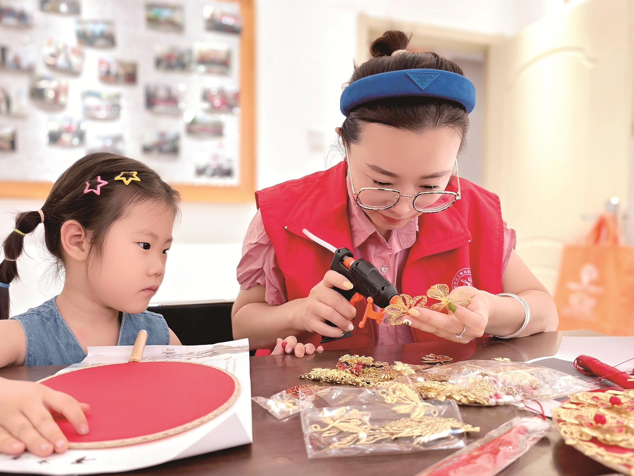 青福镇一些村和社区组织的糖画、京剧脸谱、团扇刺绣、香囊DIY等非遗文化知识及技艺传承课堂,吸引了不少居民向老师讨教技法、用材等专业问题,并深入、扎实地学习下去。非遗技艺成为全职妈妈、退休居民等群体“再就业”“第二职业”的技能选项。