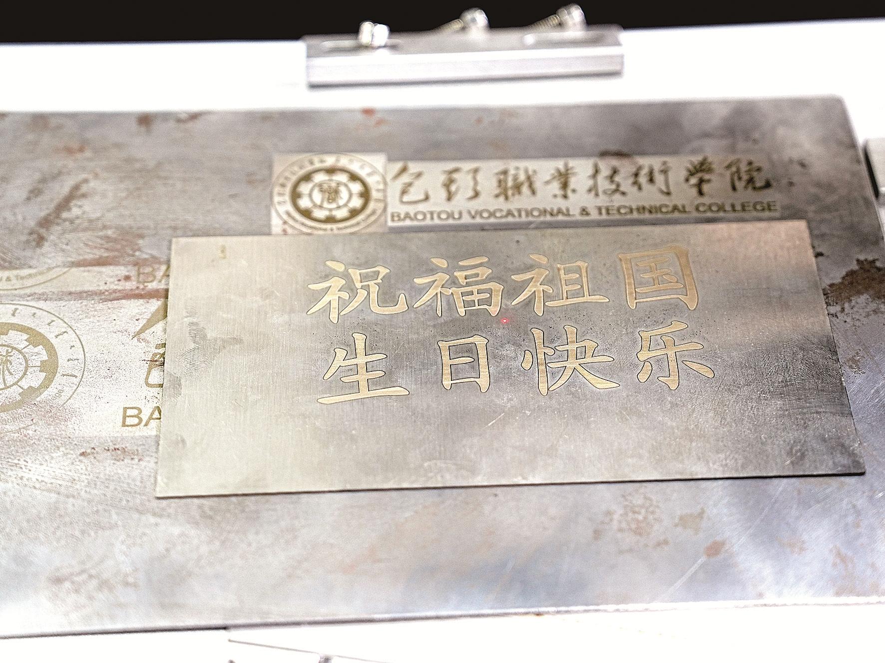 师生用激光打标机献上对祖国的祝福。