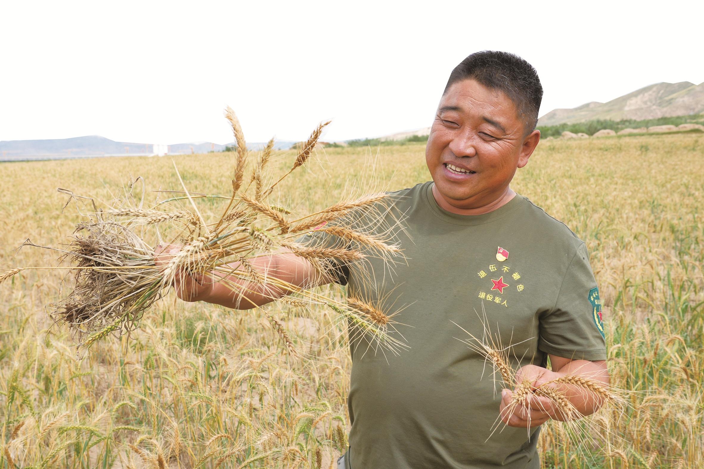 2009年,许峰被选举为白银合套村党支部书记。面对这个远近闻名的贫困村,脱贫任务艰巨。他亲自参与土地流转和基础设施建设,挨家挨户与农民沟通,描绘着种植产业的广阔前景。村民们被这位退伍老兵打动,纷纷加入进来。为提高粮食产量和质量,他积极引进先进种植技术,邀请农业专家进行技术指导,组织农民参加培训。有了村集体种地模式,农民面朝黄土背朝天挥汗如雨的场景发生了改变。麦子熟了,许峰安排农机收割;玉米苗“喊渴”,自动喷灌系统让苗子一口气“喝个饱”……“新农人”改变了传统的种植方式,从昔日的“镐锄镰犁”到今日的机械化种植收割,“数字农业”不仅让农田水肥高效,还让小麦、荞麦、葵花、莜面、玉米等农作物颗粒饱满,品质上乘,市场竞争力不断提升。