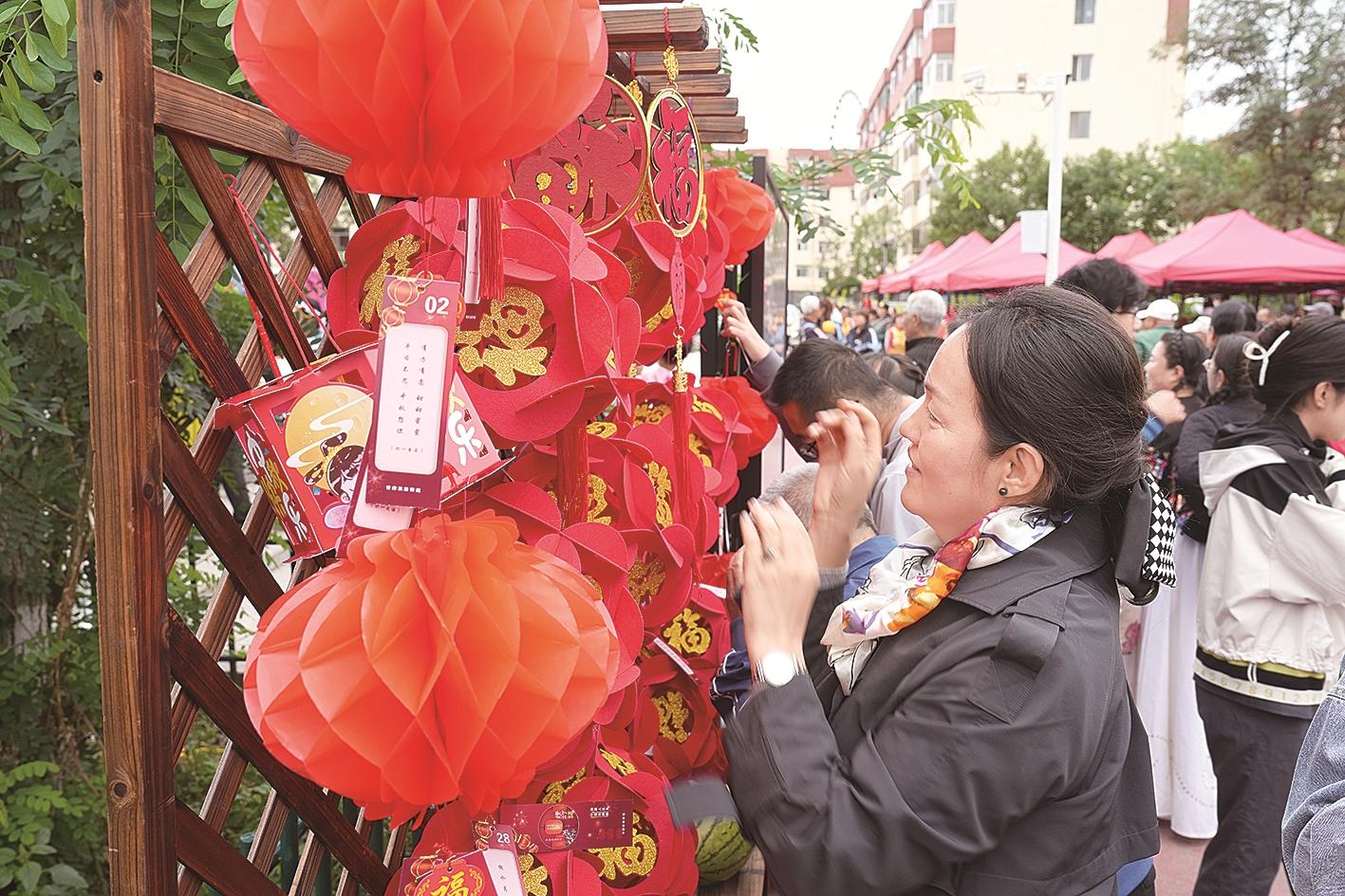此外,现场还增设传统文化体验区和便民服务区,辖区中小学的学生和居民们一起体验了“打月饼”、猜灯谜等中秋习俗,沉浸在传统文化带来的乐趣中。