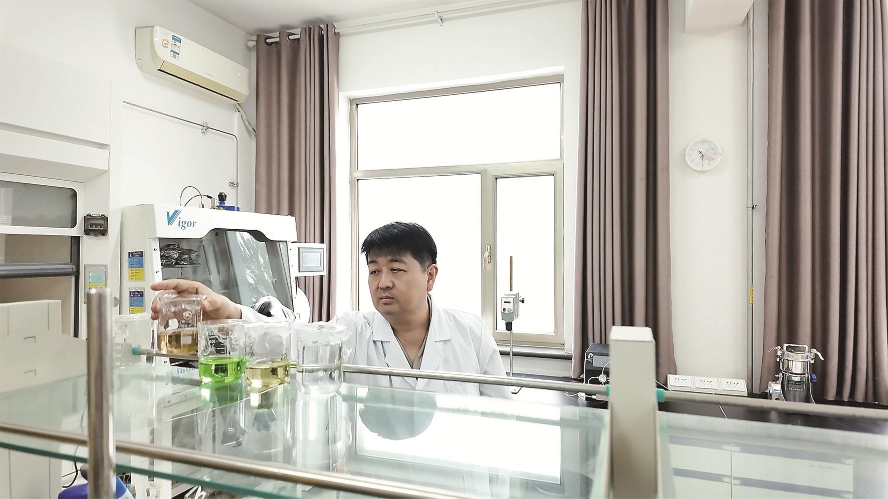 在努力学习理论知识的同时,崔建国还特别珍惜每一次深入现场调研学习的机会。夏天的萃取车间,温度高达四五十度,进门的瞬间汗水就湿透了衣背,崔建国却没有丝毫退缩,“蹲守”现场,更直观地体会工程化与实验室的差异,不断地与工人师傅、车间主任请教学习,将理论与实践有机结合。
