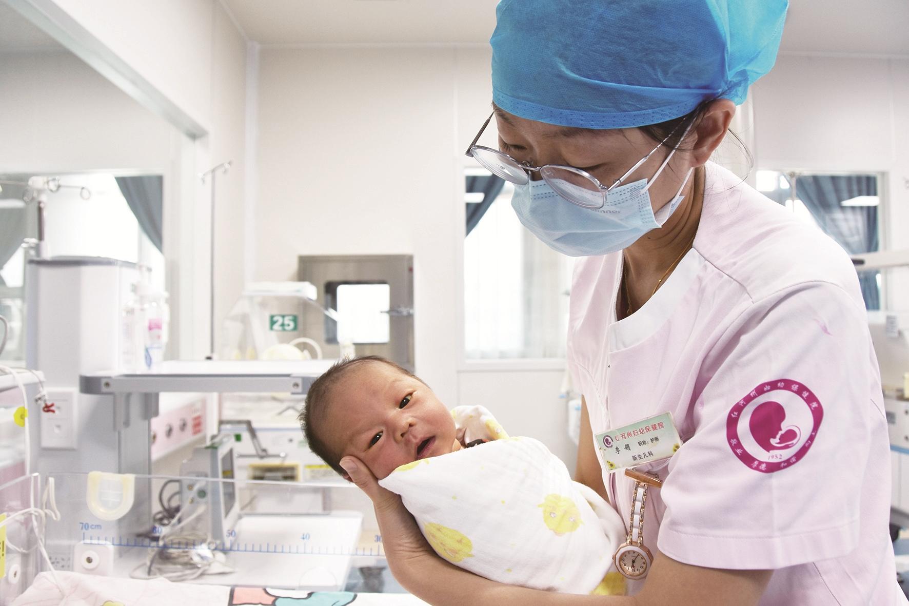 ↑9月15日,在位于云南省红河哈尼族彝族自治州蒙自市的红河州妇幼保健院,护士李娟在照料新生儿。 中秋假期,许多劳动者坚守在工作一线,在岗位上度过节日。 新华社发 (薛莹莹 摄)
