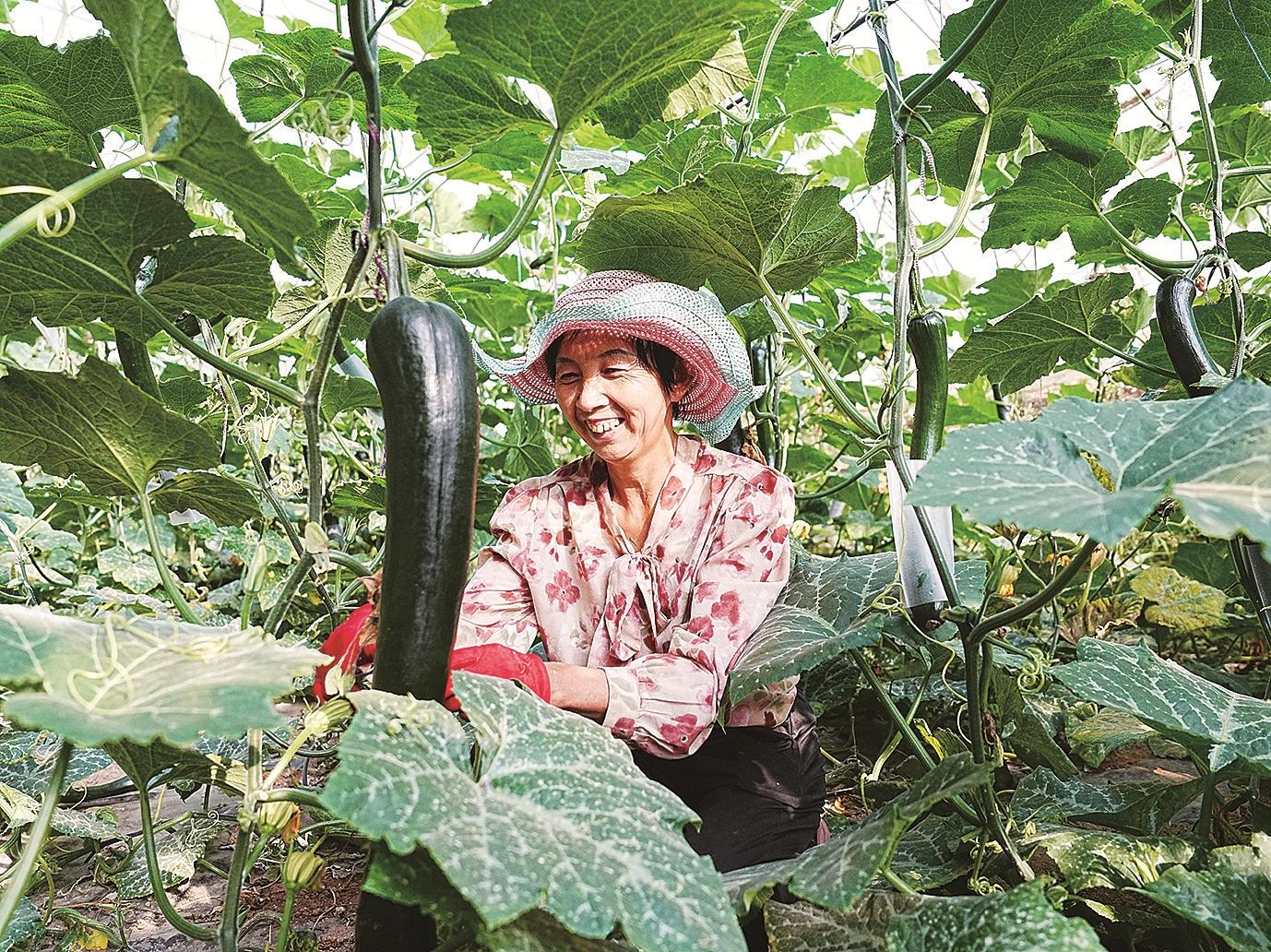 本报讯 日前,固阳县银号镇水泉村的温室大棚内,吊瓜长势喜人,丰收在望,村民高兴得合不拢嘴。据了解,种植吊瓜是该村新引进的村集体经济项目之一,亩产5000斤以上,今年预计将收获10万斤左右吊瓜。订单农业解决了农产品的销路问题,精品吊瓜成熟后将被远销到山东寿光。目前市场价每斤4元左右,可观的收入让村民们乐开了怀。