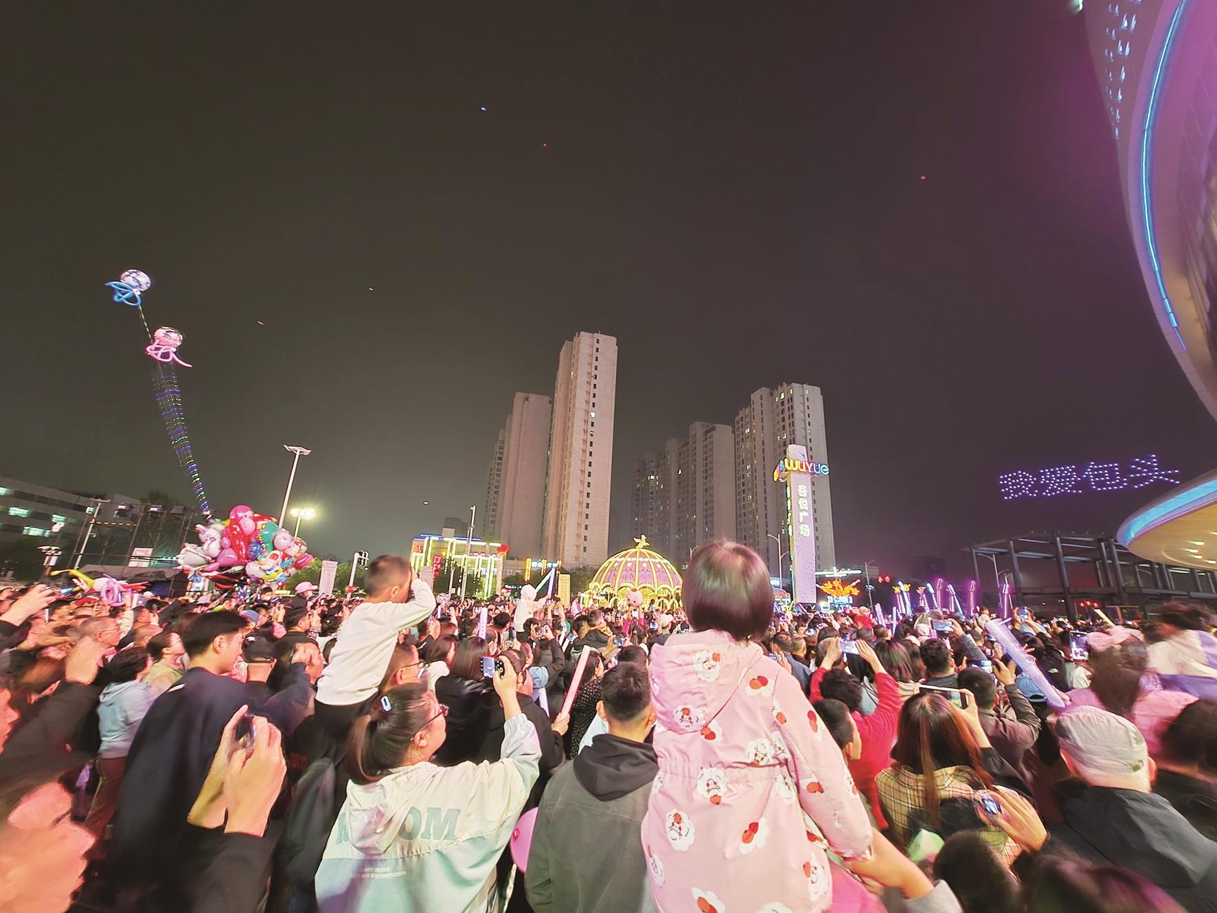 ↑“我爱包头”无人机灯光秀写出了许许多多包头人的心声。 记者 李强 摄