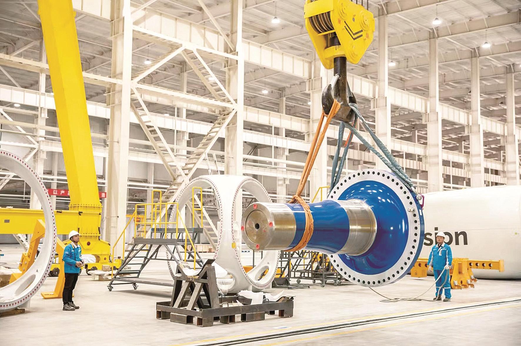 上接01 项目投产后将使用零碳园区提供的高比例绿电,可年产大兆瓦高新智能齿轮箱800台,总体带动就业超200人。”远景蒙新集团常务副总经理张元介绍,此次下线的齿轮箱已通过DNV(挪威船级社)和TüV(德国莱茵)认证,是国内唯一具备此类产品生产测试验证能力的产品,生产能力最大可覆盖12.5MW陆上风机、18MW海上风机,6750台风机产品已通过交付验证,品质已达到国际领先水平。