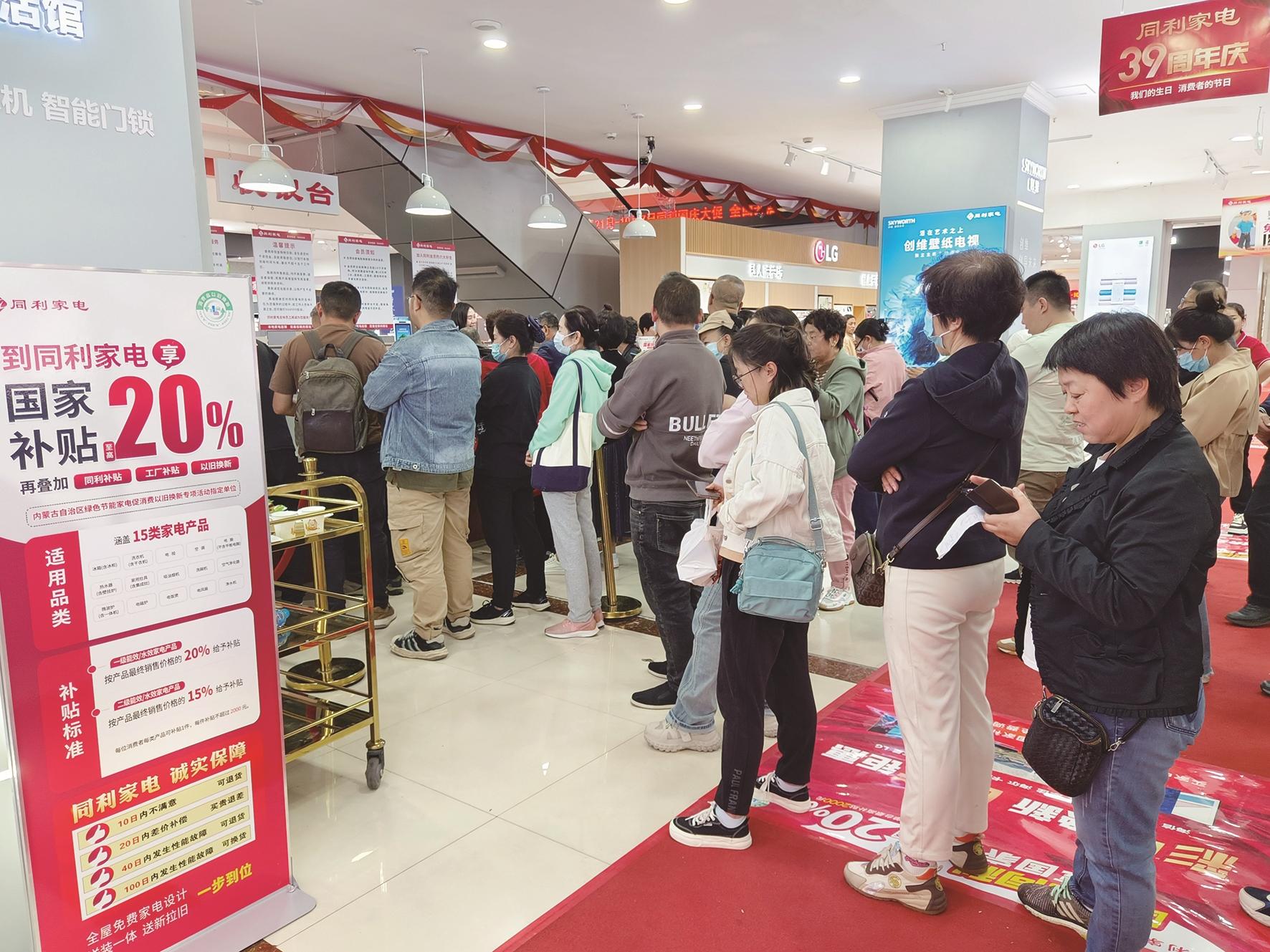 近几日,在国家补贴新政实施后,包头市消费者购买家电的热情被充分激发。不少市民朋友走进家电卖场,咨询以旧换新政策,选购心仪的家电产品。