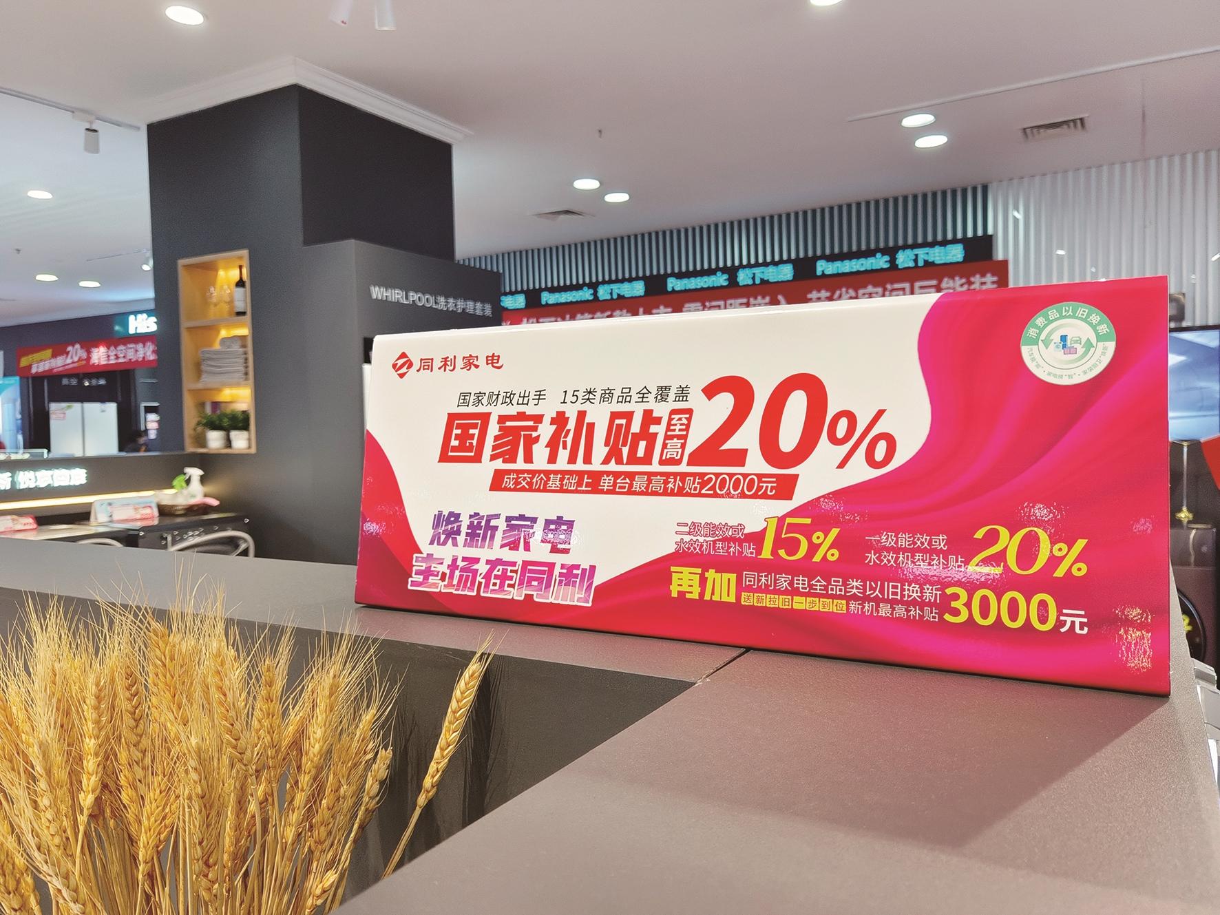 同利家电总经理祁莹介绍,得益于国家补贴政策的实施,门店销售额有了显著的增长,爆款产品不断。“现在消费者对家电产品的追求已经从‘有没有’变为注重‘好不好’。此次共有15类产品享受补贴,不光涵盖冰箱(含冰柜)、电视、洗衣机(含干衣机)、空调、电脑(不含平板电脑)、热水器(含壁挂炉)、家用灶具(含集成灶)、吸油烟机这些传统家电,还包括洗碗机、空气净化器、微波炉(含一体机)、电饭煲、电磁炉、电风扇和净水机这些新兴家电,希望能够通过这次实实在在的补贴,引导消费者购买绿色、智能、节能的新产品,促进资源循环利用,推动绿色消费。”