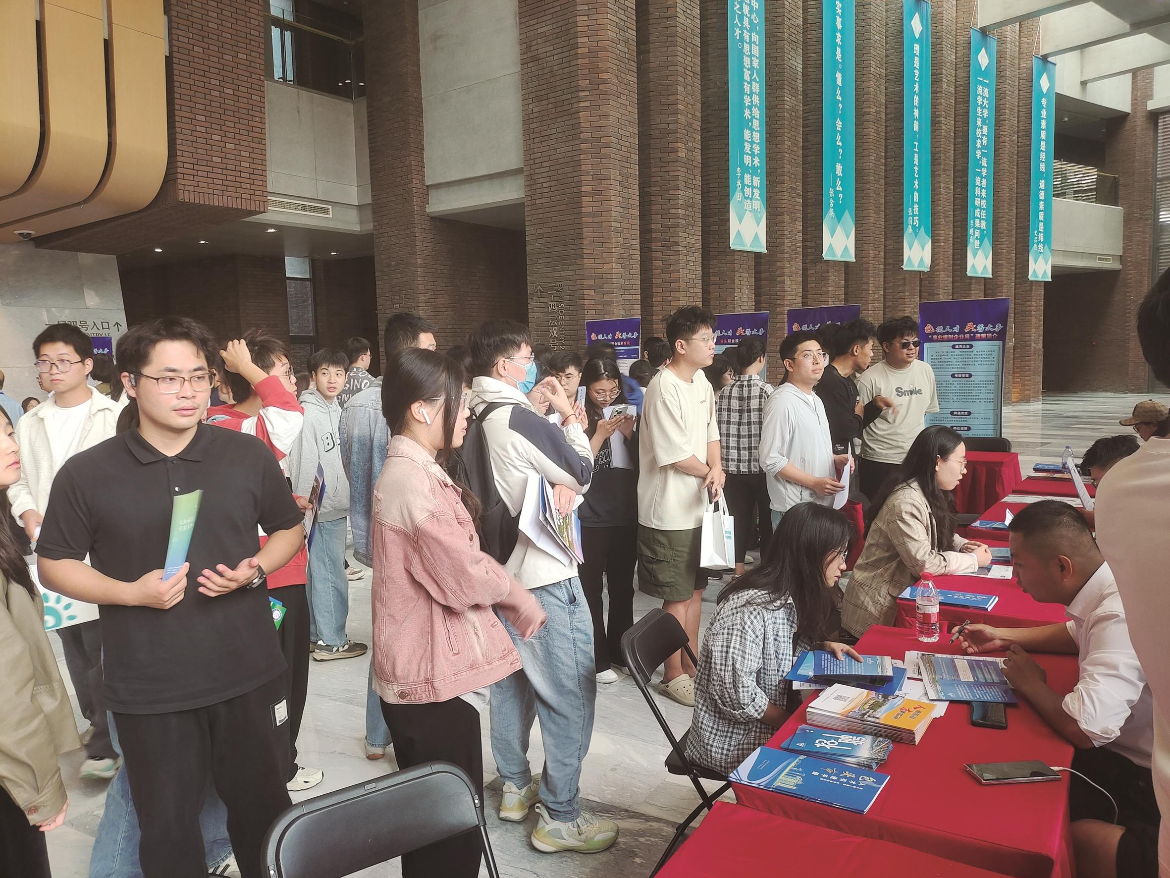 活动双选会现场人头攒动,高校毕业生们手持简历,在各企事业单位展位前浏览招聘信息,询问岗位要求、发展状况、薪资待遇等情况,寻找自己心仪的就业岗位,各家招聘单位争相向高校毕业生介绍自己的企业和招聘岗位,氛围热烈。