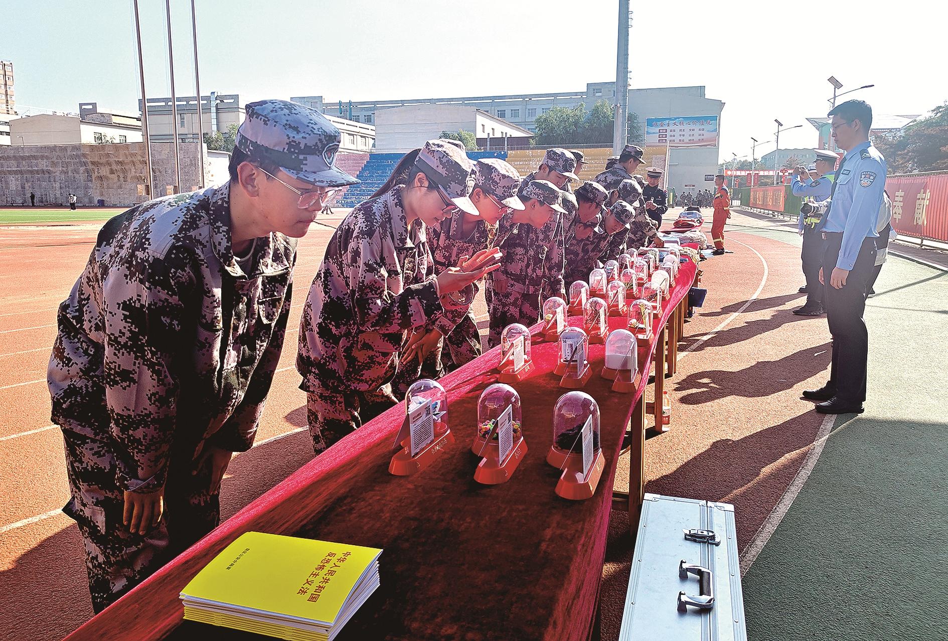 活动中,大学新生观看了无人机排爆表演,详细了解反恐防暴工作的重要性,进一步增强反恐防暴意识与处理突发事件的应变能力。同时,民警开展了反诈宣讲、防范非法集资宣讲、禁毒模型展示等活动。在民警的指导下,大学新生们还“亲密”接触部分警用装备,近距离体验公安民警在工作中使用的警用装备器械,体验警营文化,“沉浸式”感受公安工作的魅力。