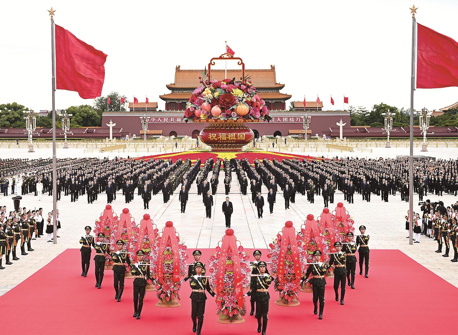 9月30日上午,党和国家领导人习近平、李强、赵乐际、王沪宁、蔡奇、丁薛祥、李希、韩正等来到北京天安门广场,出席烈士纪念日向人民英雄敬献花篮仪式。新华社记者 谢环驰 摄